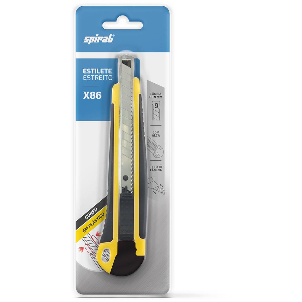 Estilete estreito emborrachado em plástico, Lâmina de 9mm, Amarelo, X86, Spiral - BT 1 UN