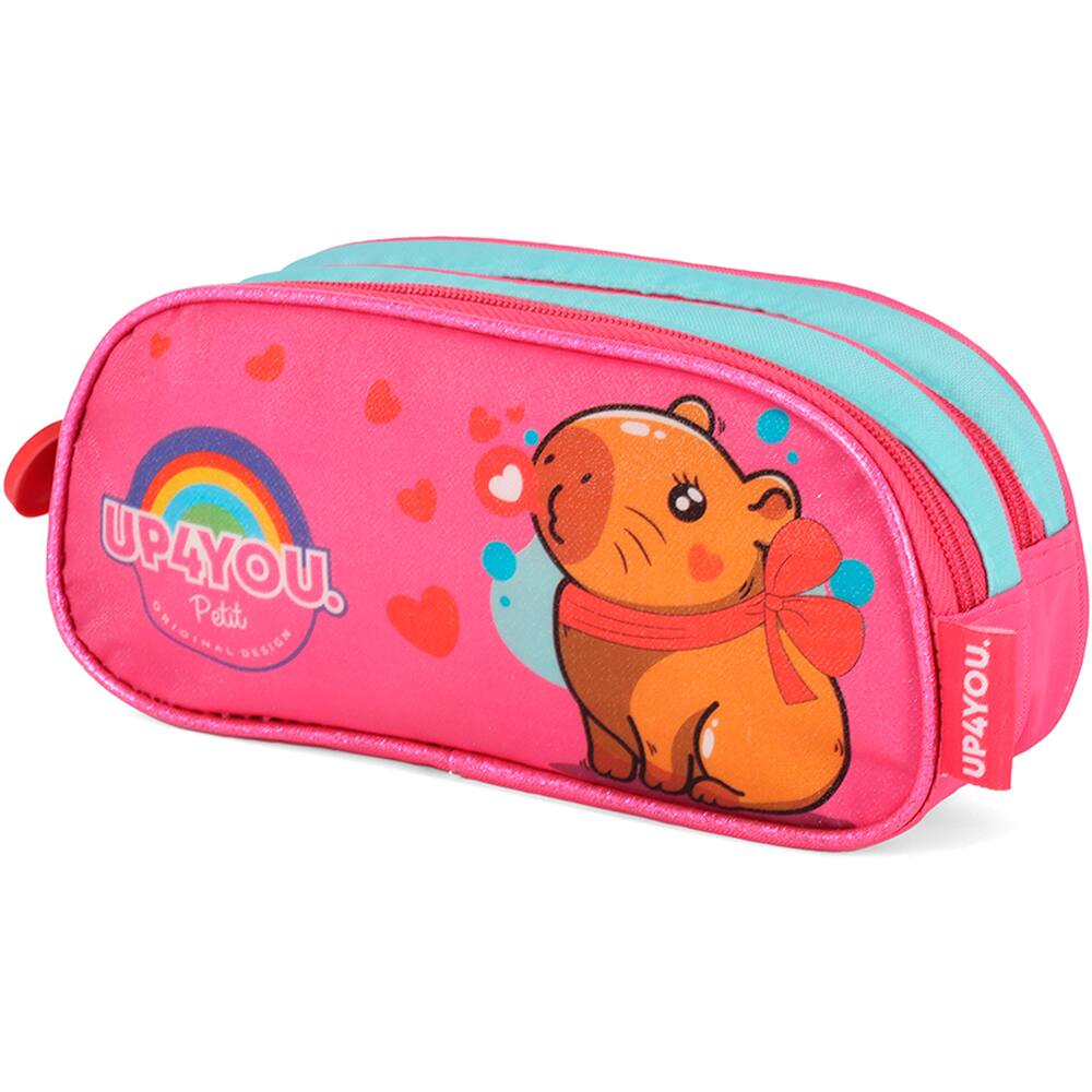 Estojo escolar duplo, Up4You Capivara, Rosa, Luxcel - PT 1 UN