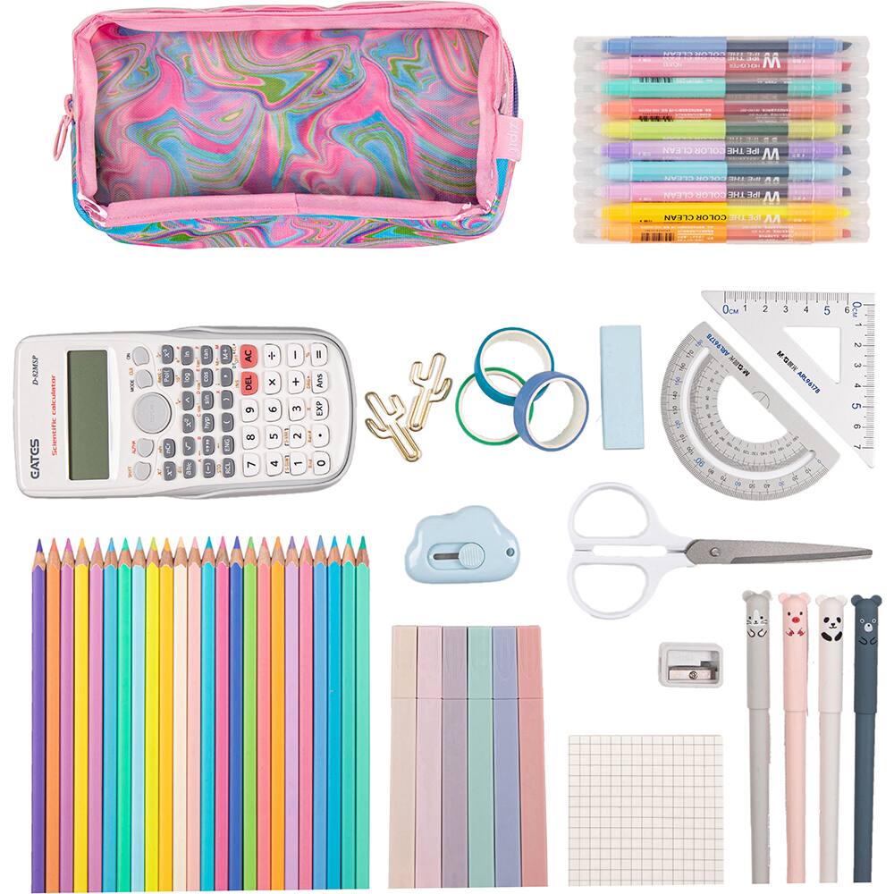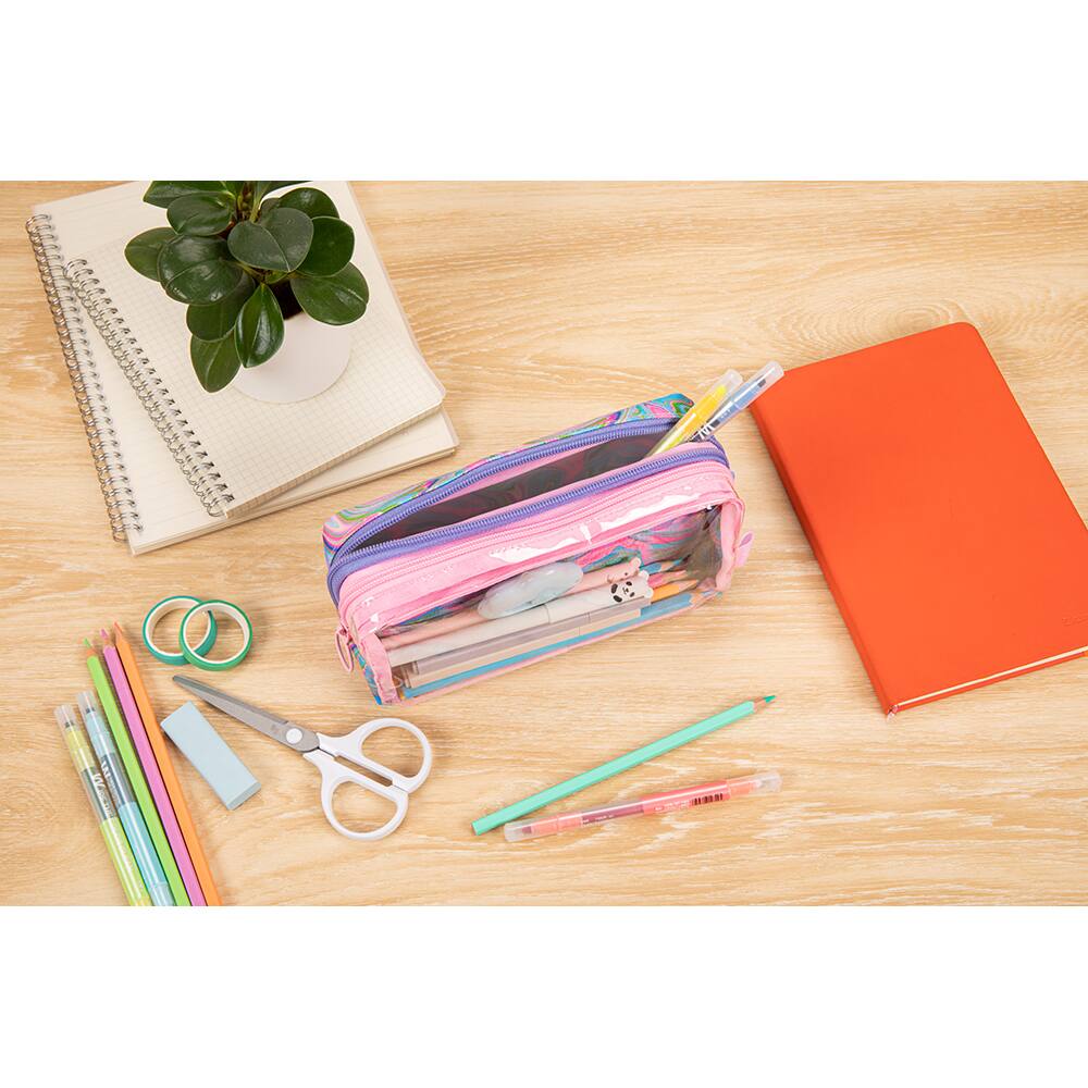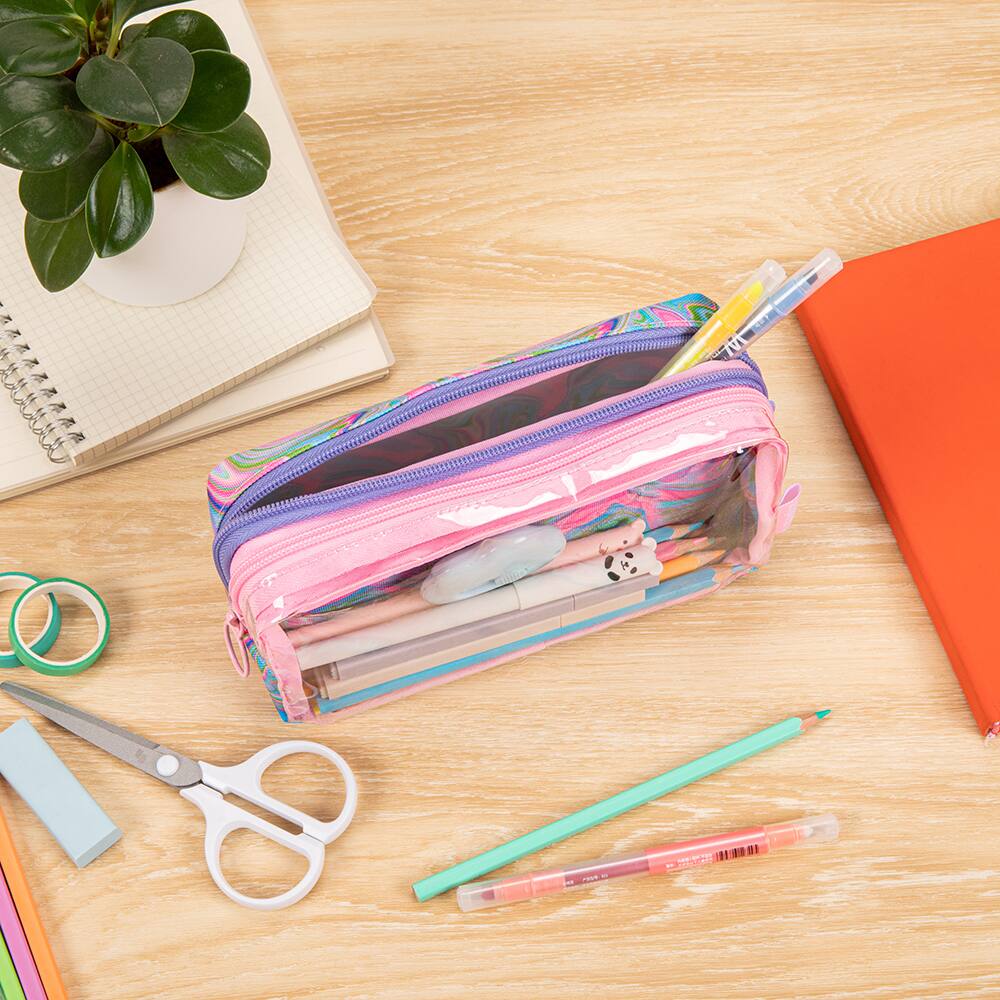 Estojo escolar com 2 compartimentos, compartimento traseiro extra, que pode armazenar ate 70 canetas, lápis, marcadores de textos, e etc Ideal para armazenamento e organização, hierárquica dos itens.