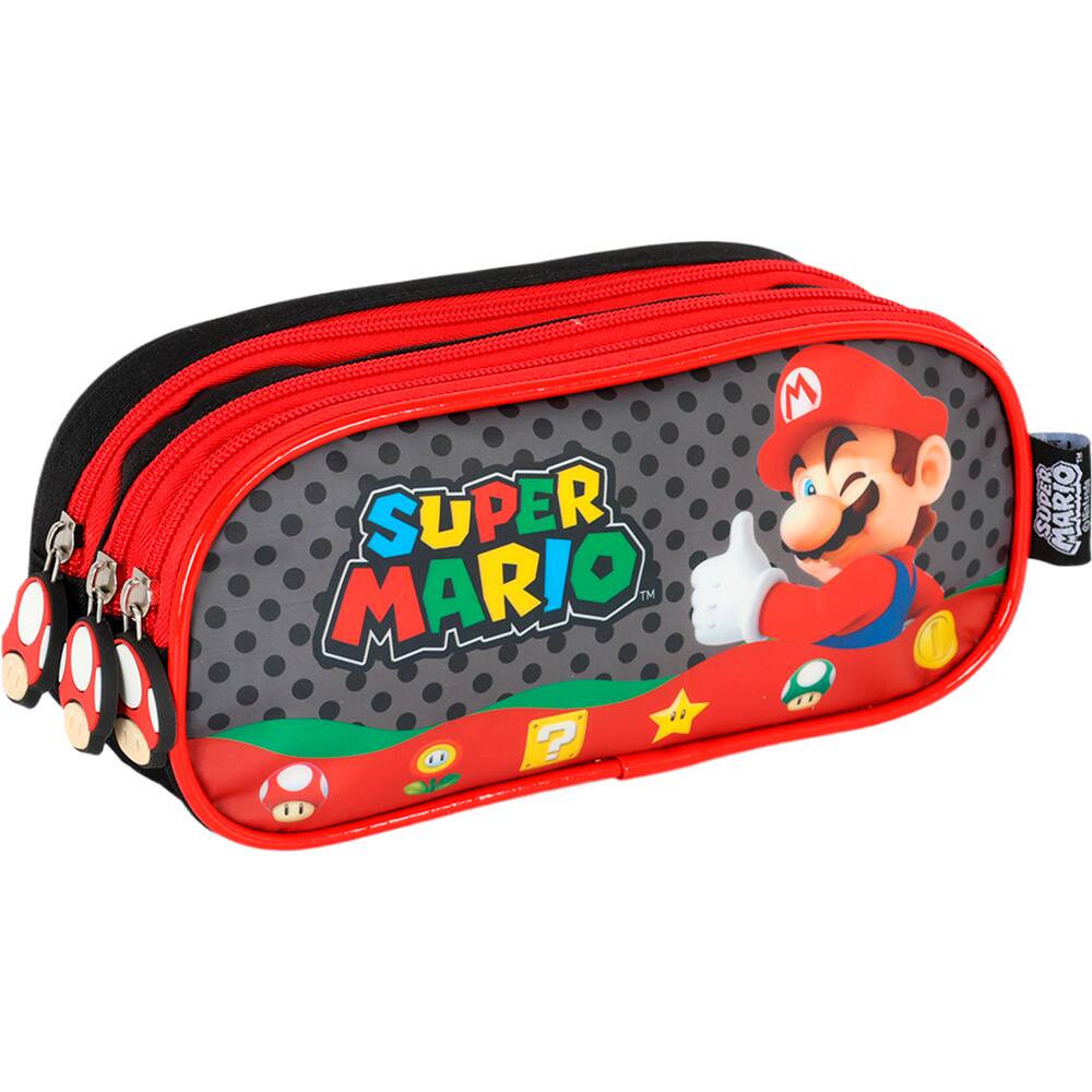 Estojo escolar triplo em poliéster, Mario Bros, Vermelho e Preto, EI42545MO0600U, Luxcel - PT 1 UN