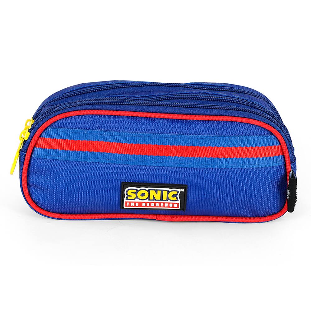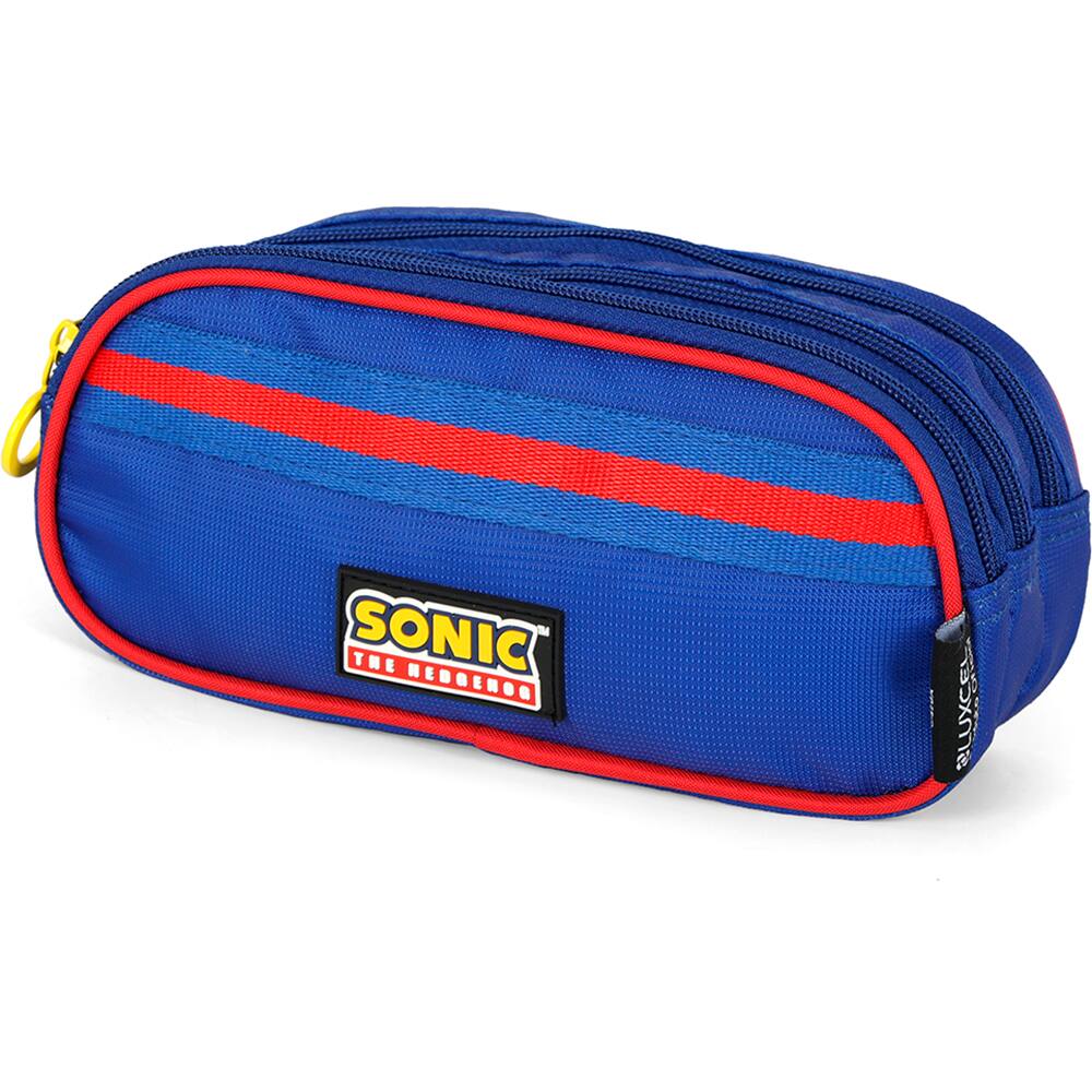 Estojo escolar triplo em poliéster, Sonic, Azul, ET49823SO0, Luxcel - PT 1 UN