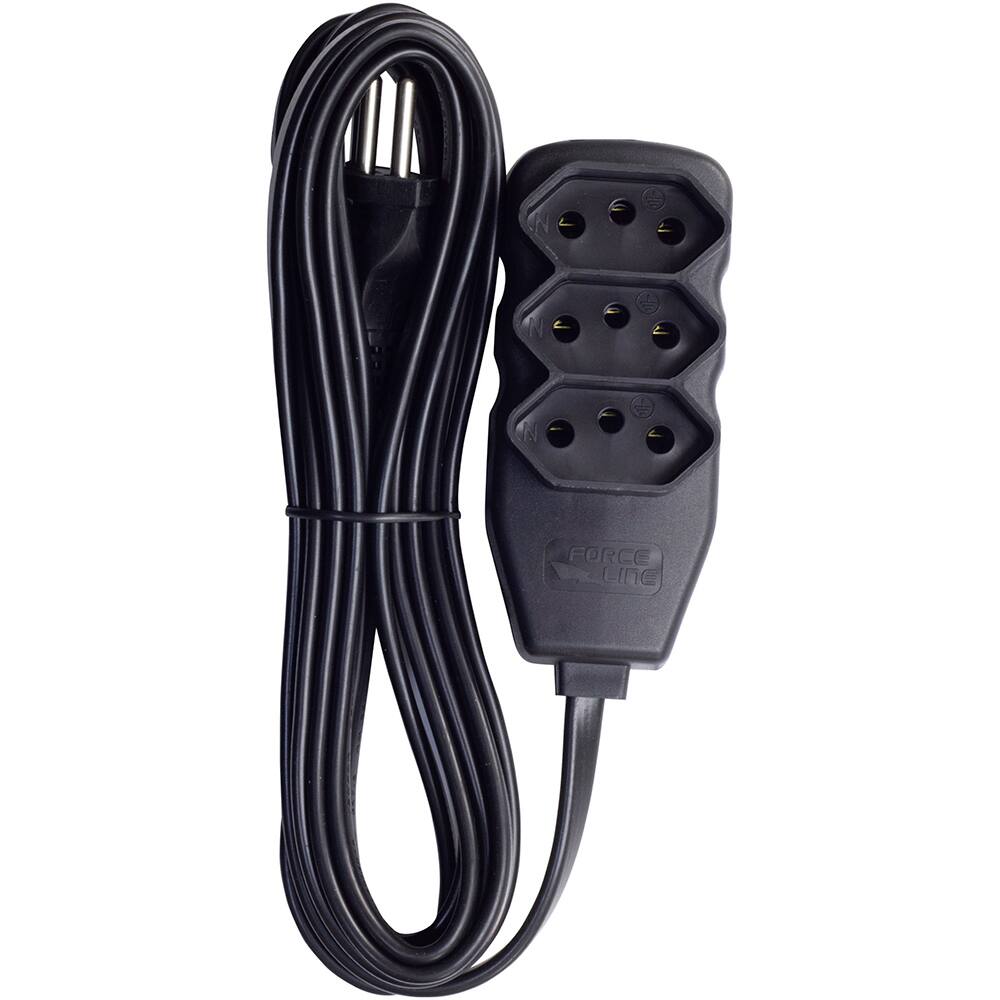 Extensão elétrica 3 tomadas, 3 pinos, cabo de 3 metros, 10A, Preto, 0180200505, Force-line - PT 1 UN