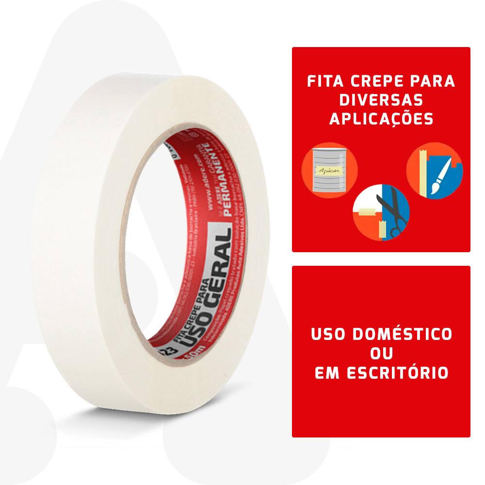 Fita crepe para uso geral, 24mm x 50m, Branca, 423S, Adere - PT 1 UN