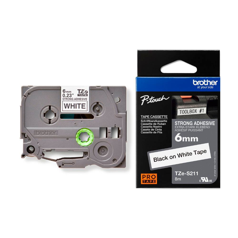 Fita para rotulador Brother 6mm super cola, Preto com fundo branco, TZES211, Brother - CX 1 UN