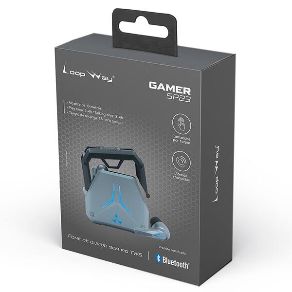 Fone de ouvido bluetooth TWS Gamer, Cinza, SP23, Loop Way - CX 1 UN