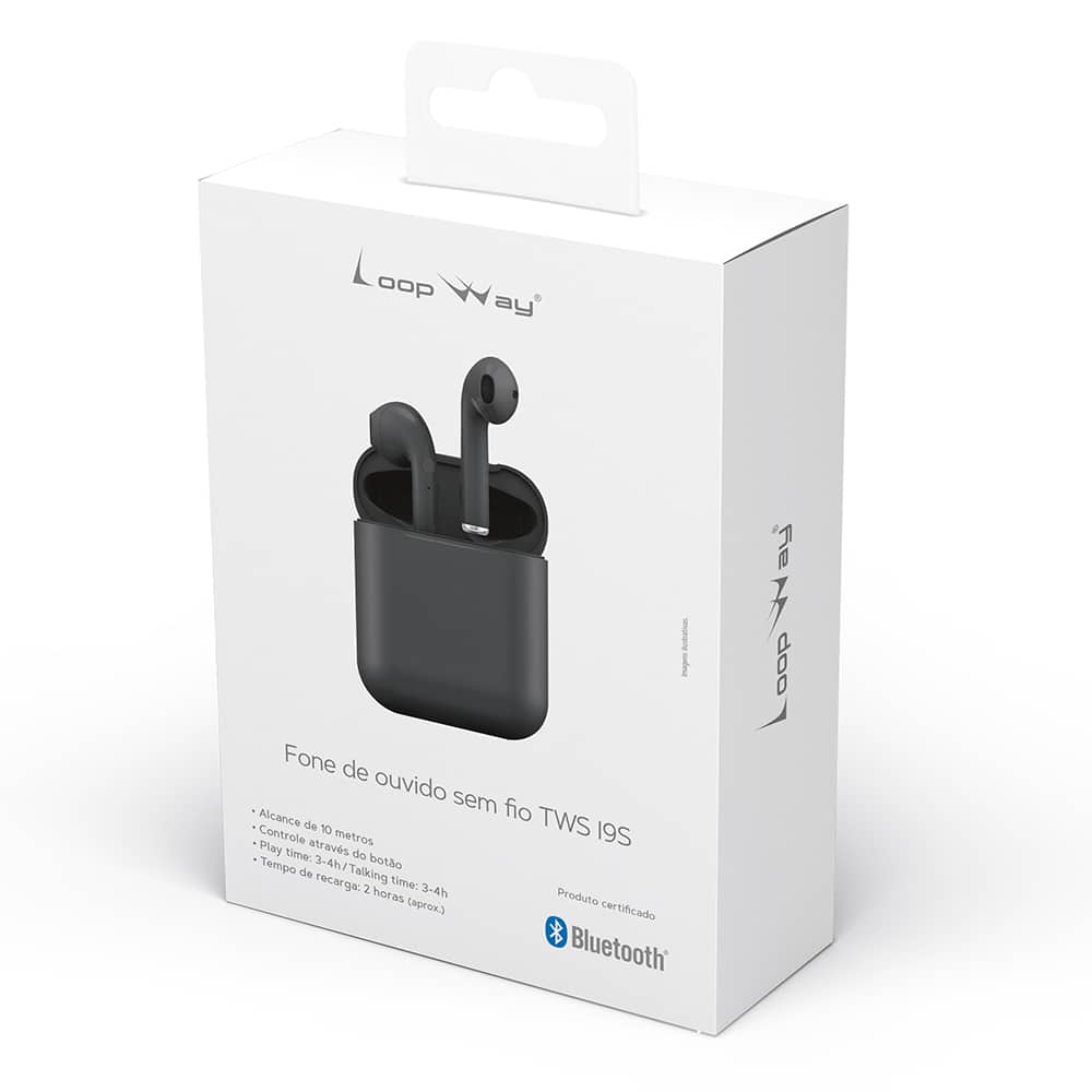 Fone de ouvido bluetooth TWS, Preto, I9S, Loop Way - CX 1 UN