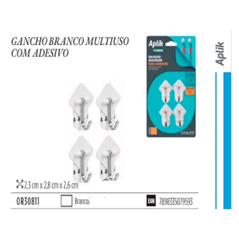 Gancho adesivo multiuso pequeno branco Aplik OR30811 Ordene BT 4 UN