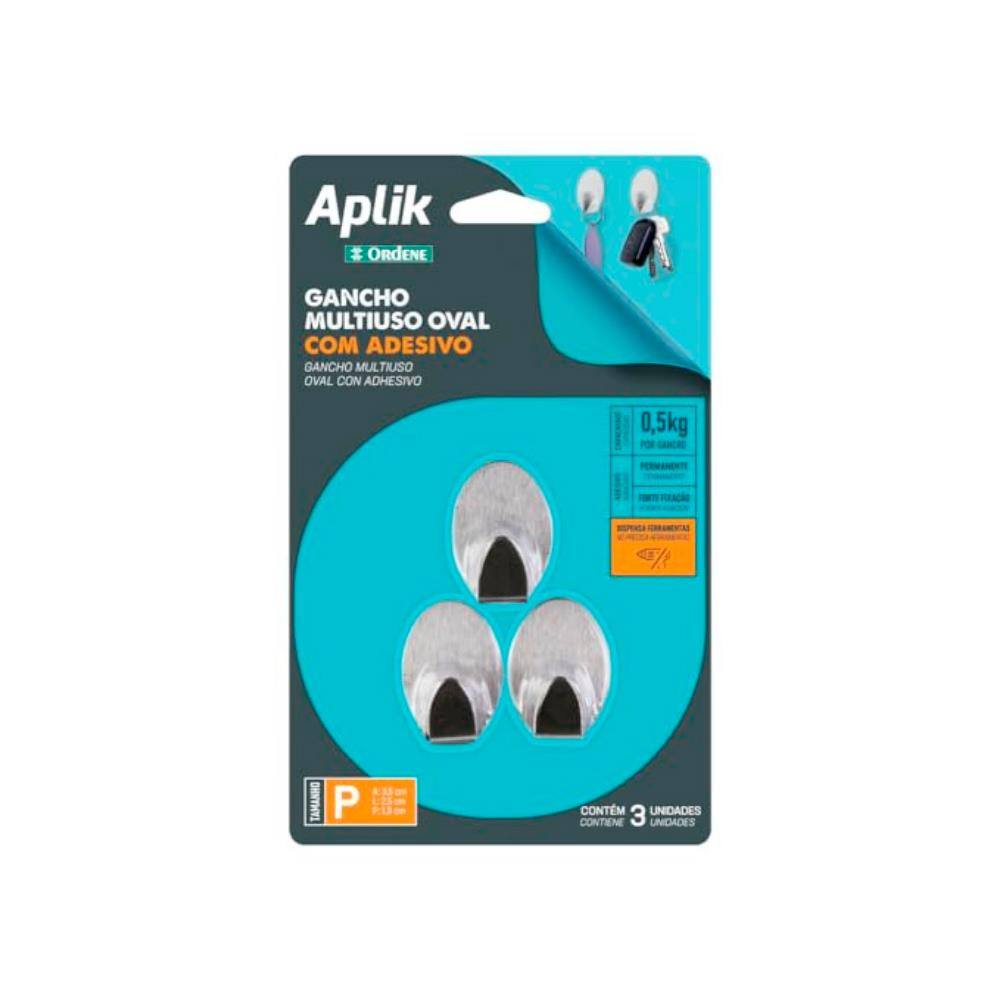 Gancho adesivo oval pequeno metálico Aplik OR30651 Ordene BT 3 UN