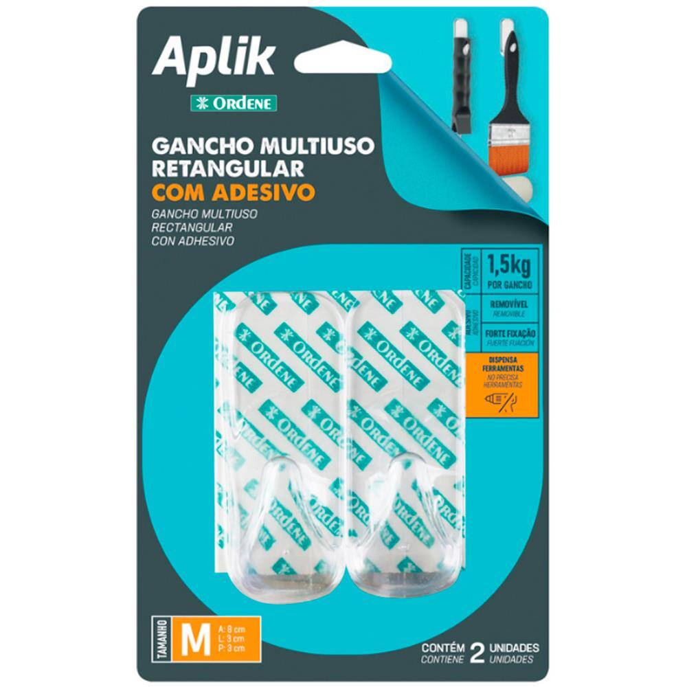 Gancho adesivo retangular médio cristal Aplik OR30242 Ordene BT 2 UN
