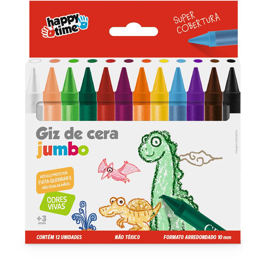 Giz de cera 12 cores, Gizão Jumbo, Happy-time - BT 12 UN