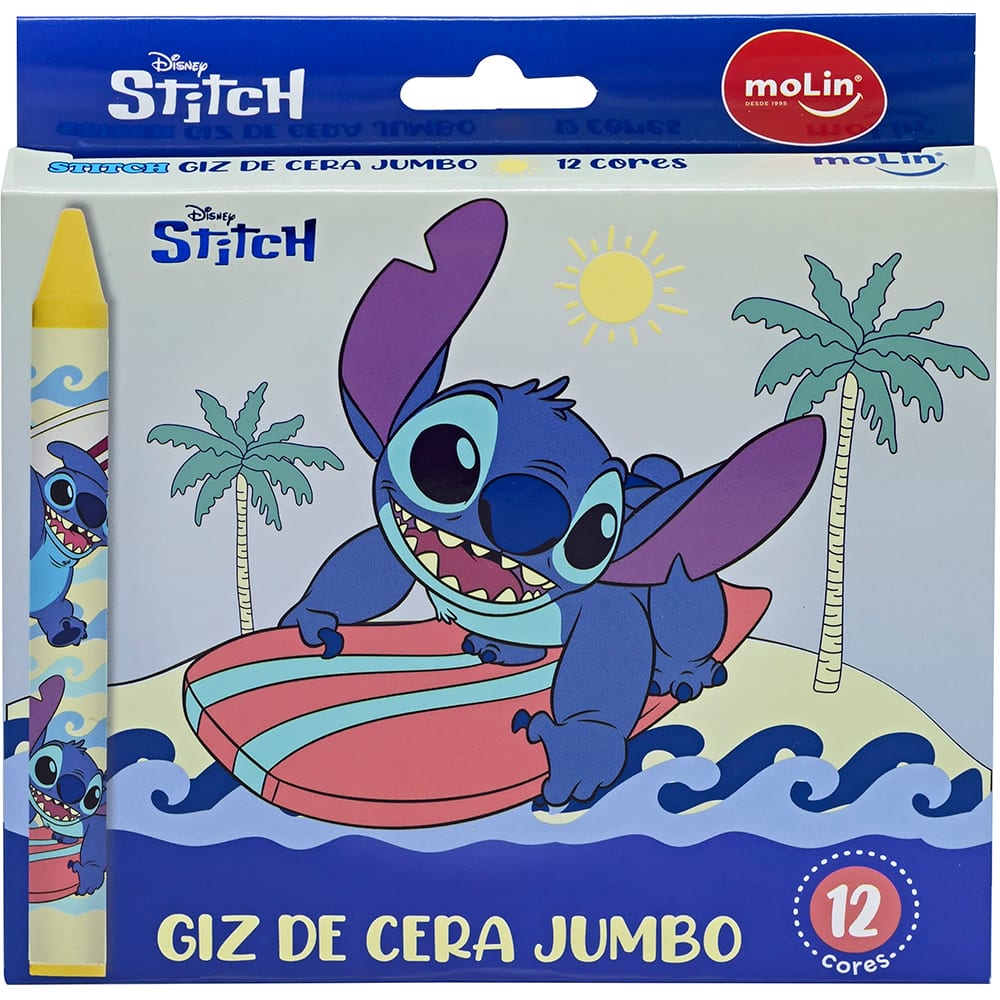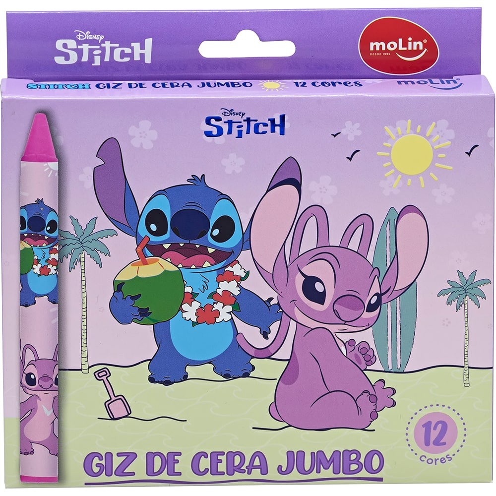 Giz de cera 12 cores gizão Stitch 31313 Molin CX 1 UN