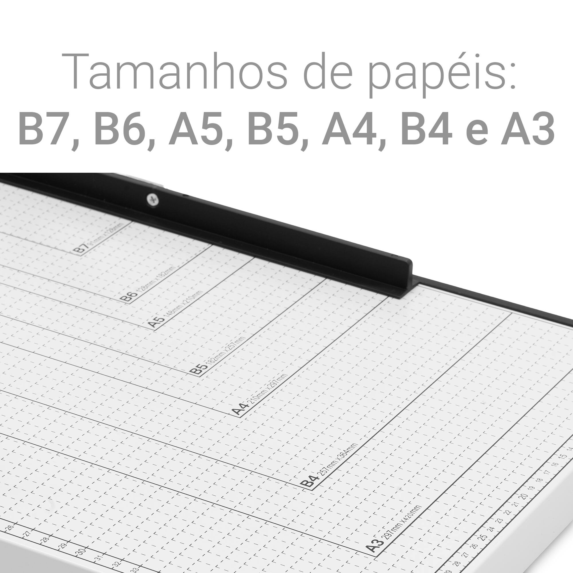 - Indicador do tamanho do papel: B7, B6, A5, B5, A4, B4 e A3