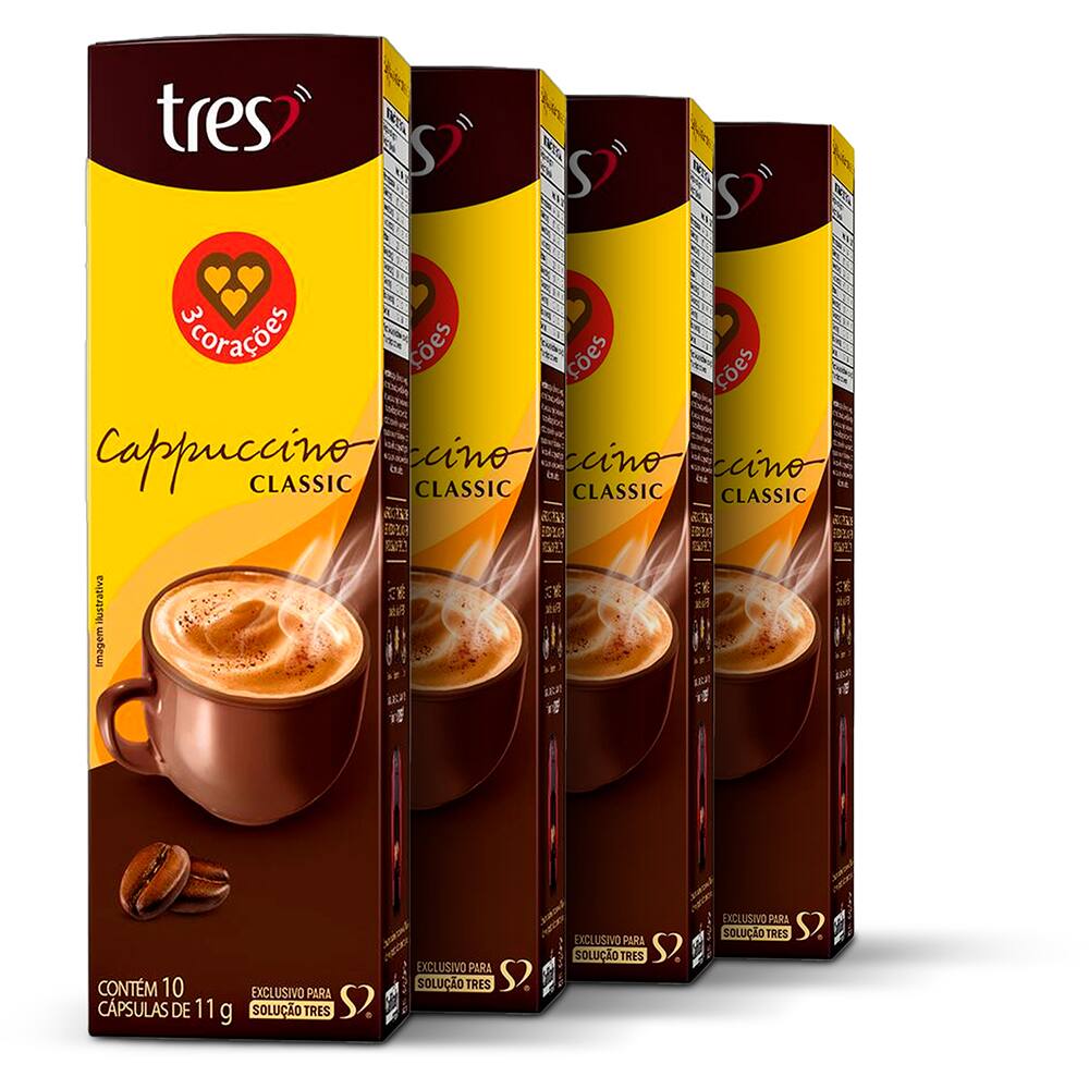 Kit com 40 Cápsulas de Cappuccino classic, Compatível com Cafeteira Tres, 3 corações - CX 1 UN