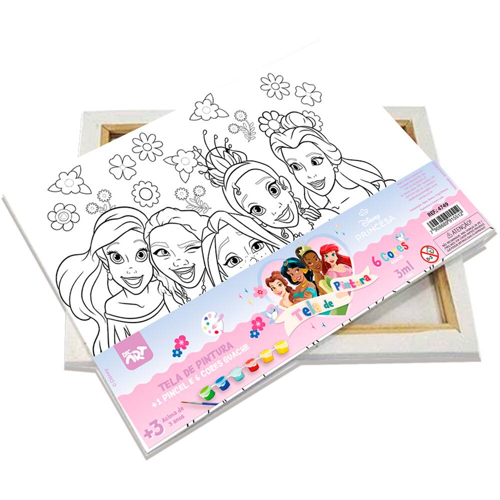 Kit de pintura Princesas, 22cm x 16cm, com pincel e 6 tintas, DAC - PT 1 UN