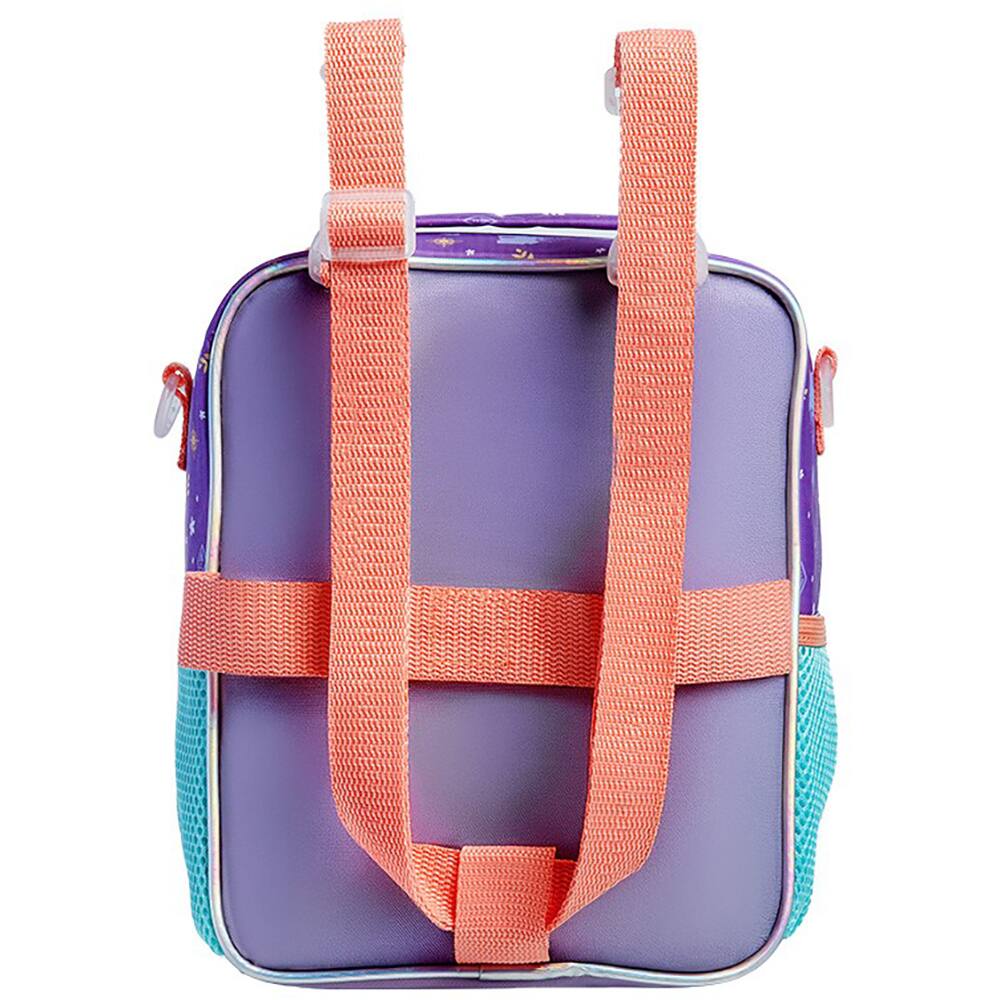 Sua frente em PVC fosco com glitter traz uma arte encantadora que brilha com delicadeza. O forro em PEVA garante melhor conservação dos alimentos, ideal para acompanhar a rotina escolar. Conta ainda com zíper tratorado e puxadores emborrachados personalizados, que facilitam o uso e dão um toque divertido.