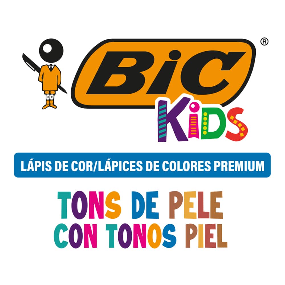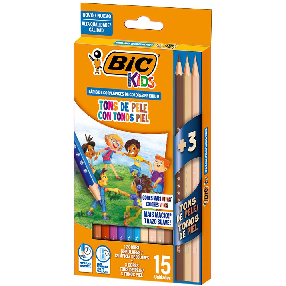 Lápis de Cor 12 cores 3 Tons de Pele, Cores Vivas, 301088, BIC - BT 15 UN