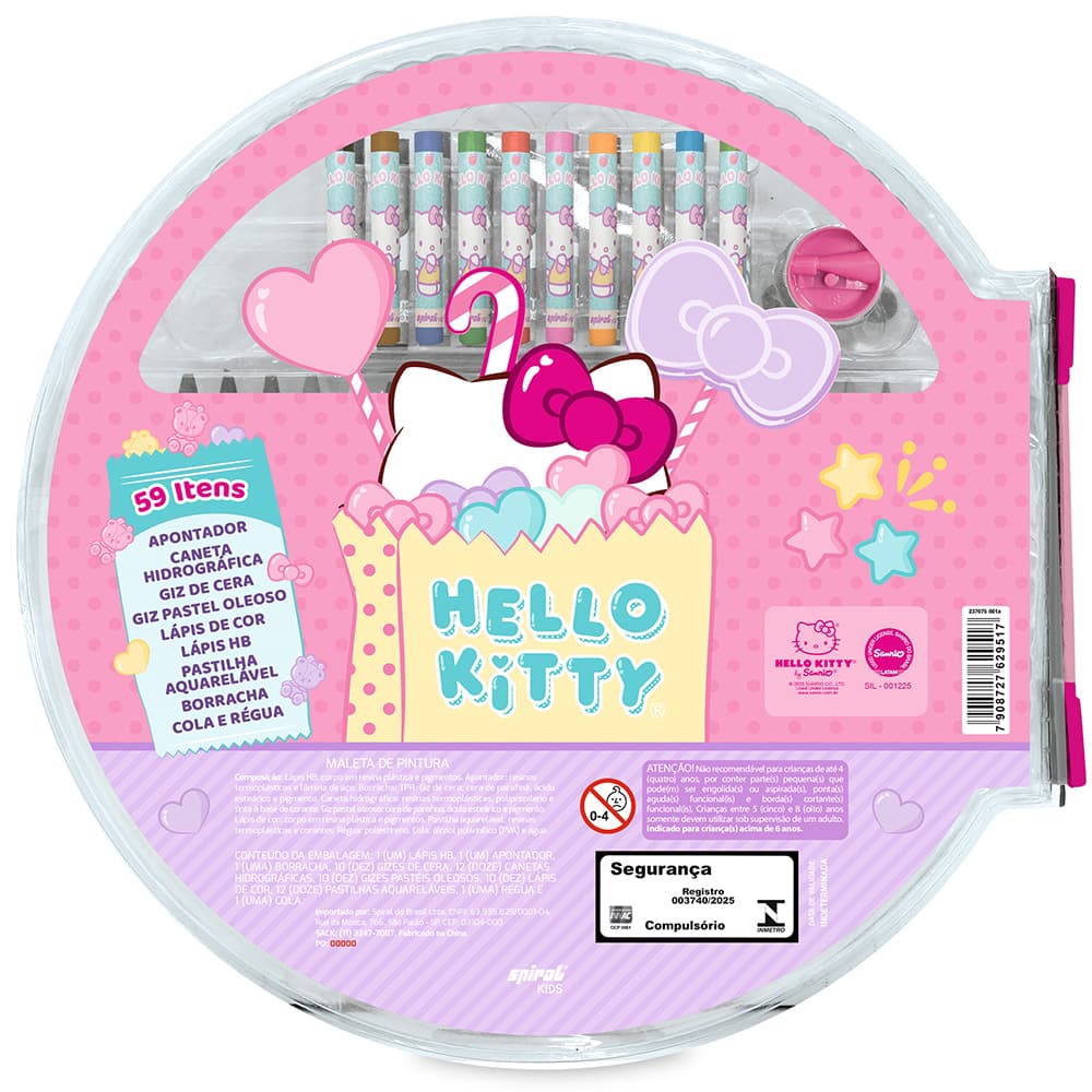 Maleta para colorir Hello Kitty com 59 itens, Spiral Kids - CX 59 UN