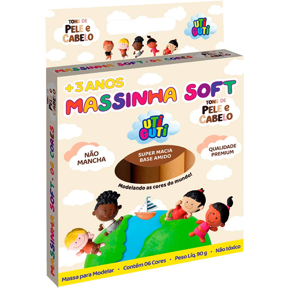 Massa p/modelar 90g c/6 cores tons pele e cabelo 600005 Uti Guti CX 1 UN