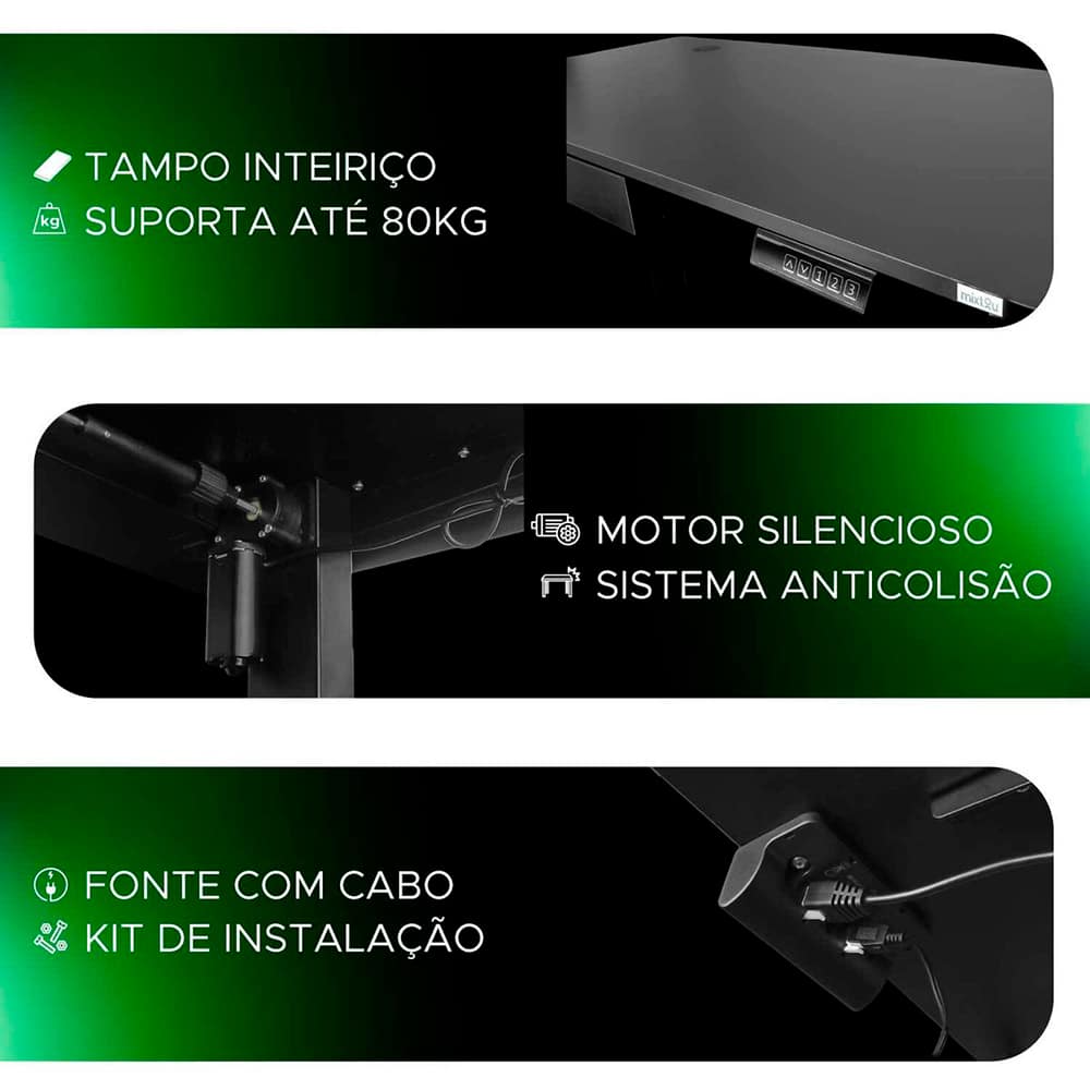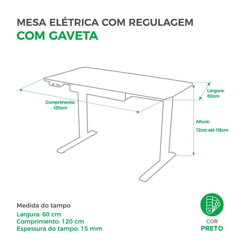 Mesa Ergonômica com Regulagem de Altura Motorizada Elétrica com Gaveta para Escritório e Home Office, Preta - Mixtou - CX 1 UN