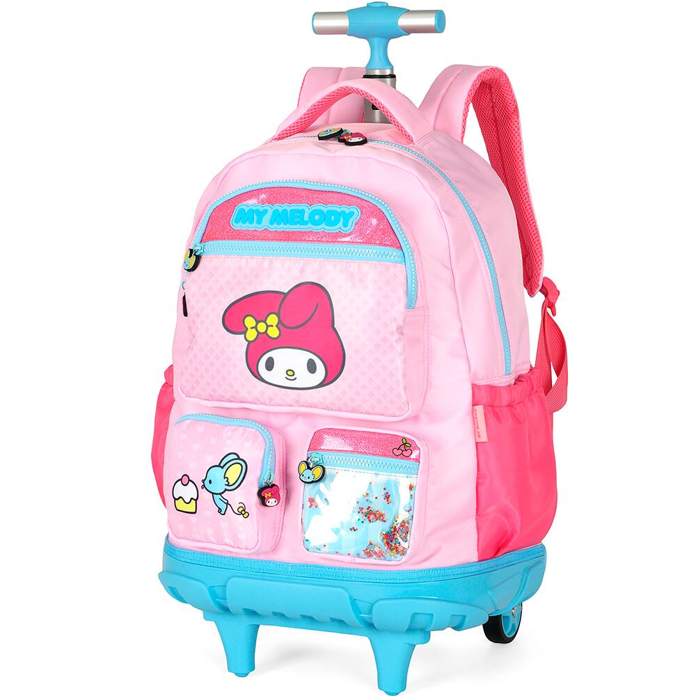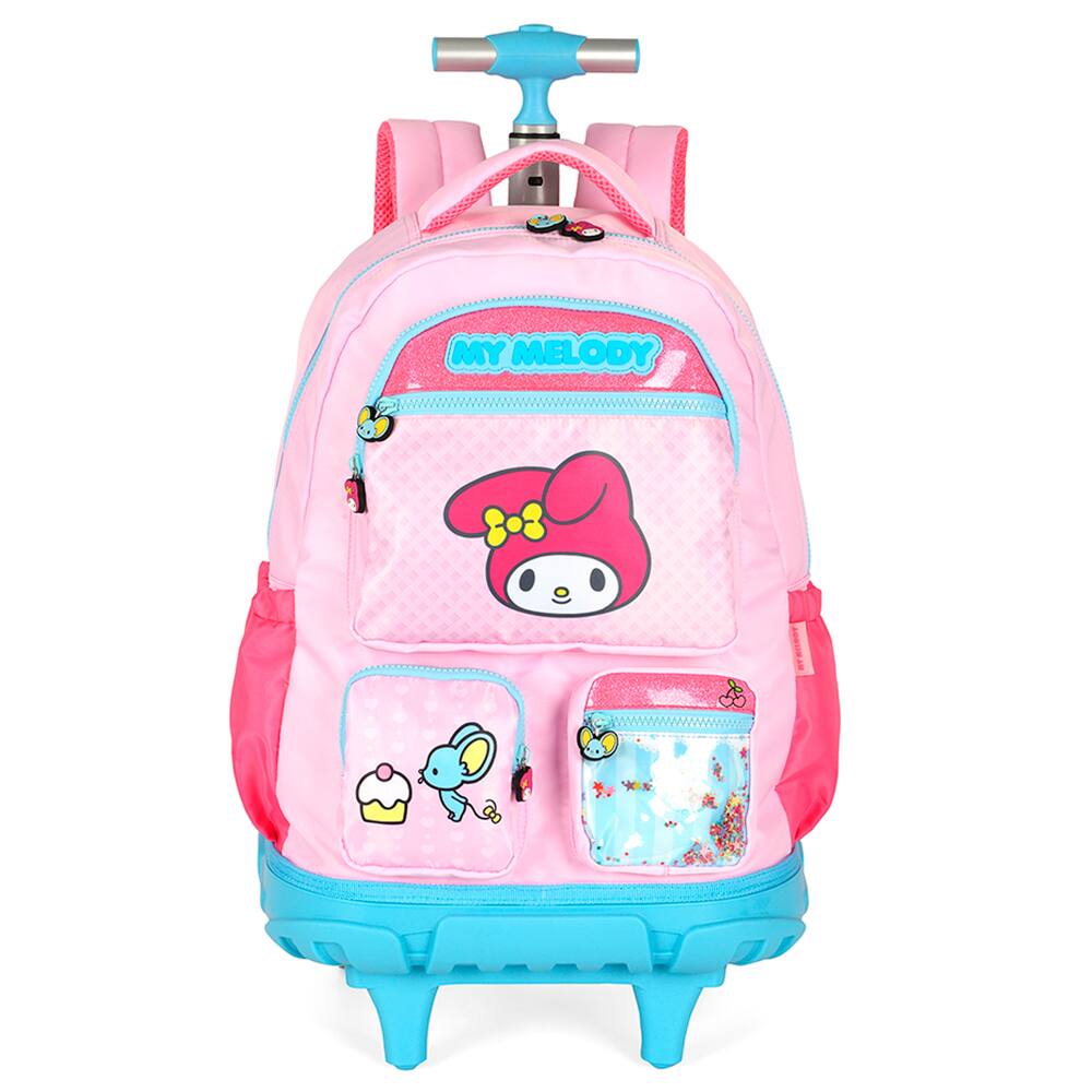 Mochila escolar com rodas, Amigos da Hello Kitty, My Melody, Rosa, MC49694SR0300U, Luxcel - PT 1 UN