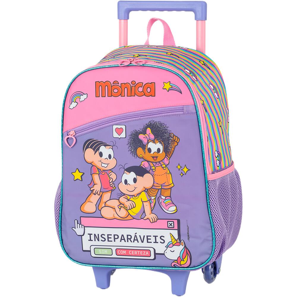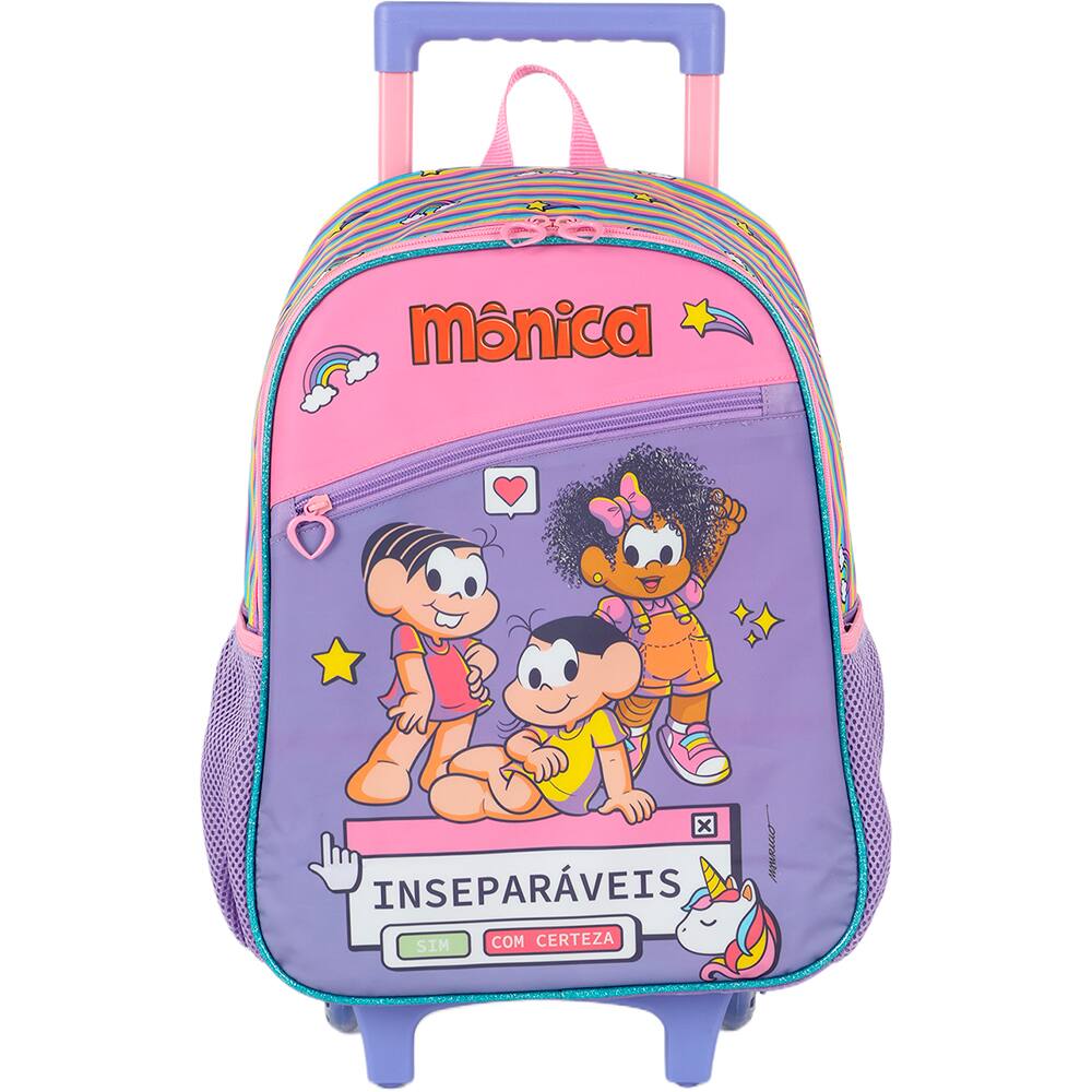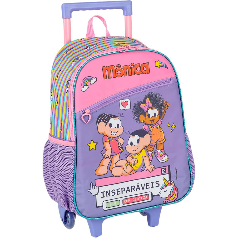 - Mochila escolar com rodas, Turma da Mônica, Mônica, Magali e Milena