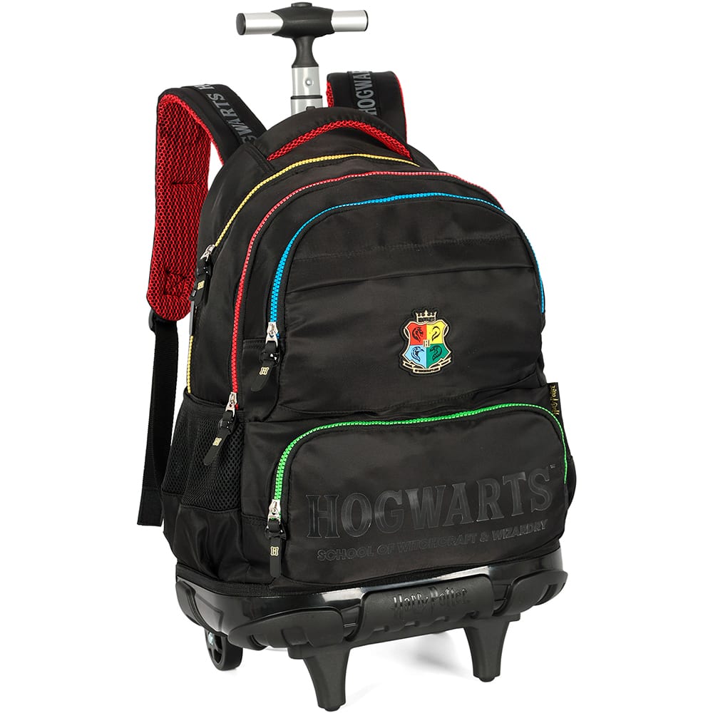 Mochila escolar em poliéster com rodas Harry Potter, Hogwarts, Preta, MC49762HP0, Luxcel - PT 1 UN