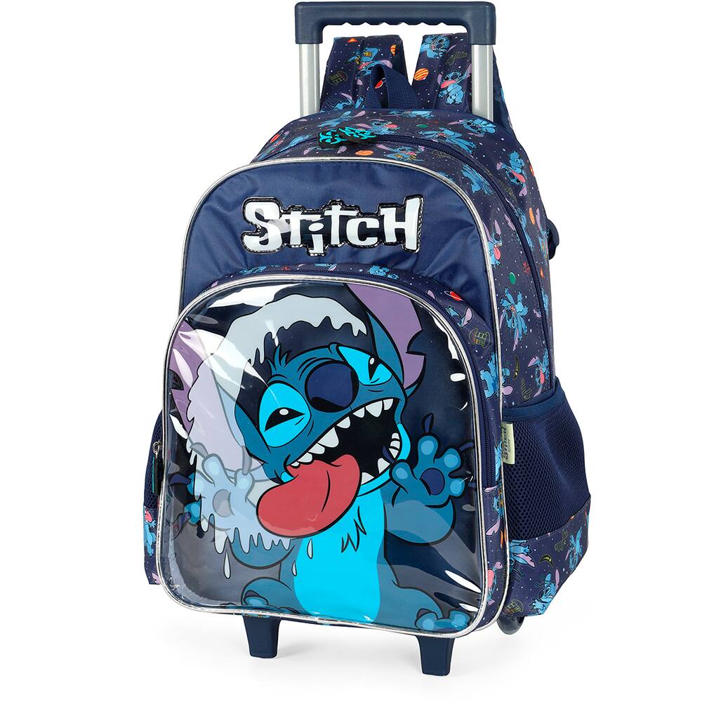 Mochila escolar em poliéster com rodas Stitch, Disney, Azul, IC42372SCKL02, Luxcel - PT 1 UN