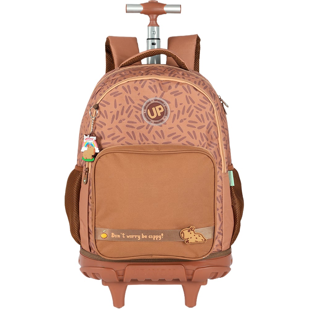 Mochila escolar em poliéster com rodas Up4you Capivara, Marrom, Luxcel - PT 1 UN