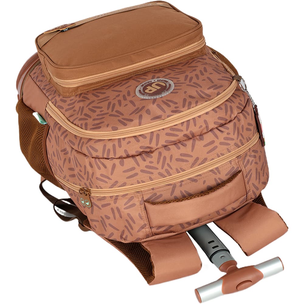 As rodinhas e o cabo retrátil oferecem a praticidade que todos precisam no dia a dia, tornando o transporte de livros e cadernos uma tarefa simples e descomplicada. Além de sua funcionalidade, a mochila é confeccionada em poliéster de alta qualidade, garantindo durabilidade e resistência. O tom marrom proporciona uma estética elegante e neutra, que combina perfeitamente com o estilo dos alunos!