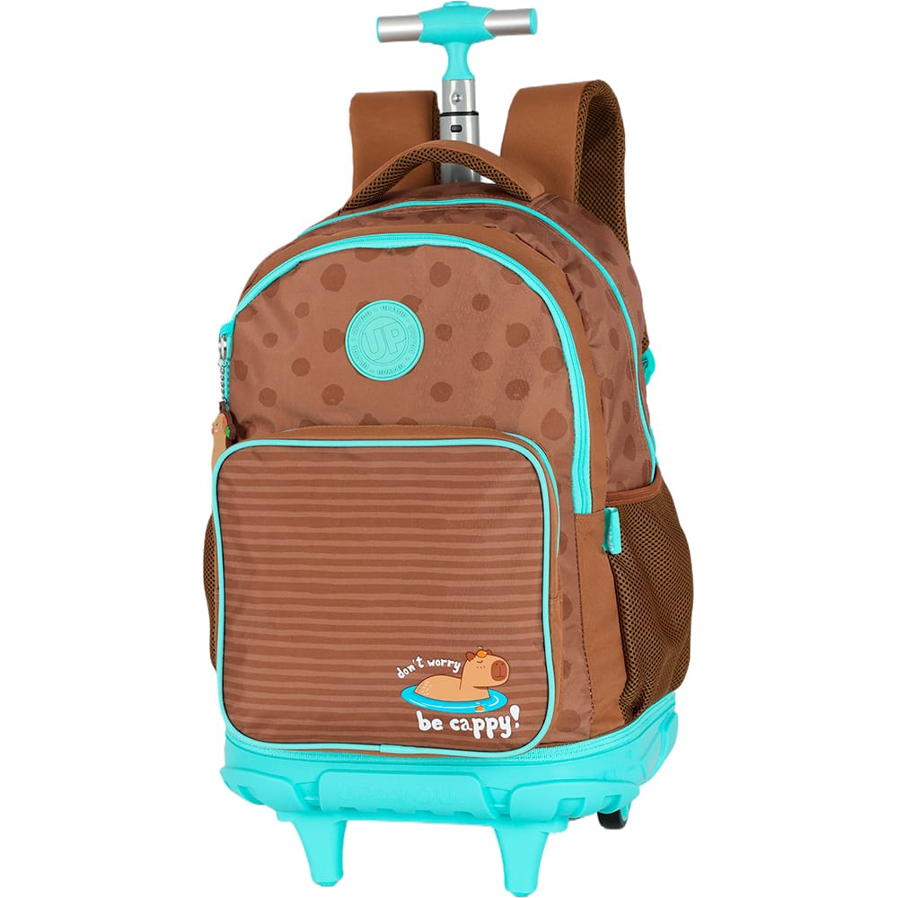 Mochila escolar em poliéster com rodas Up4you Capivara, Verde, Luxcel - PT 1 UN