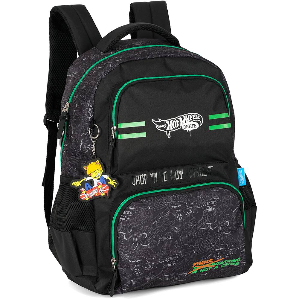 Mochila escolar em poliéster Hot Wheels Skate, Preto com verde, MS50001HW0, Luxcel - PT 1 UN