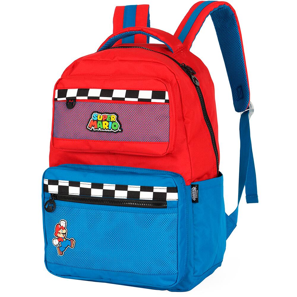 Mochila escolar em poliéster Mario Bros, Azul com vermelho, Luxcel - PT 1 UN