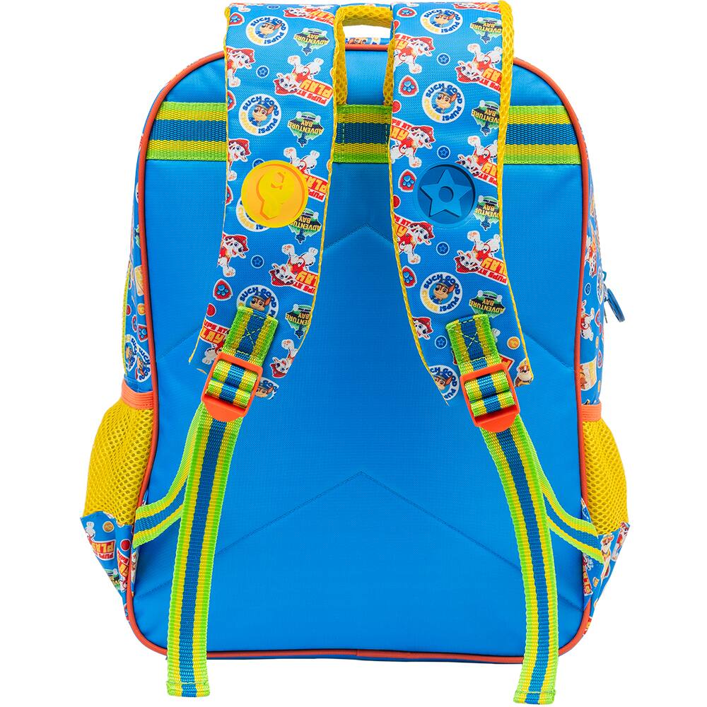 Na parte frontal, os personagens aparecem em PVC patch com detalhes emborrachados, criando uma arte divertida e texturizada. O detalhe em PVC com mesh e o cadarço estampado completam o design com ainda mais estilo. As alças de ombro são estampadas e acolchoadas, oferecendo conforto extra para a rotina escolar.