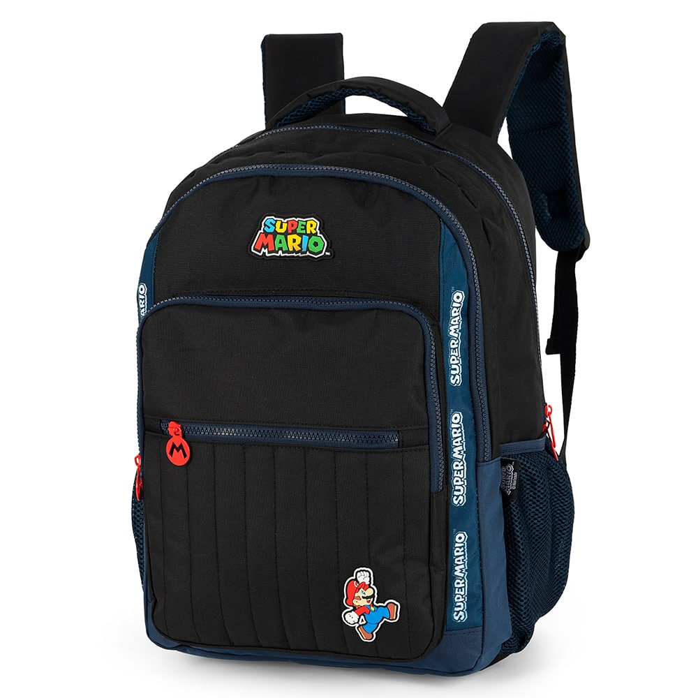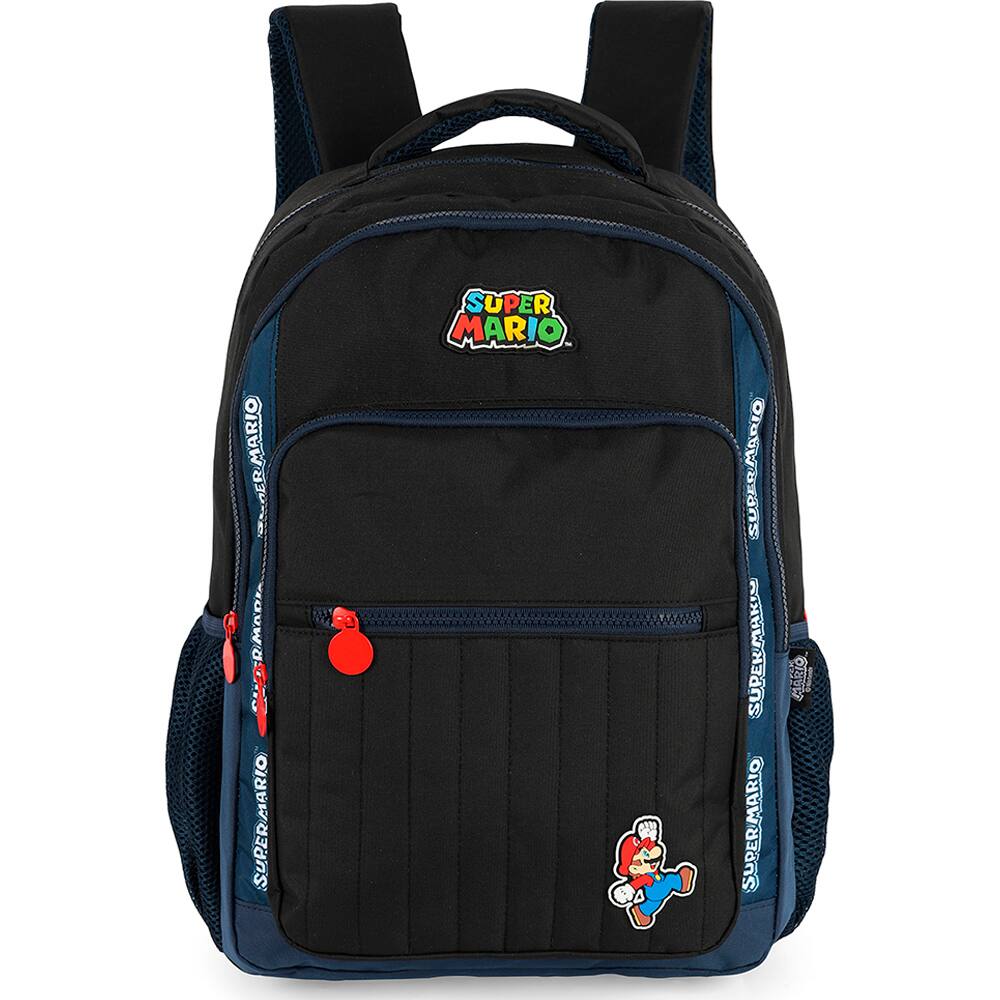 Mochila escolar em poliéster Super Mario Bros, Preto, Luxcel - PT 1 UN
