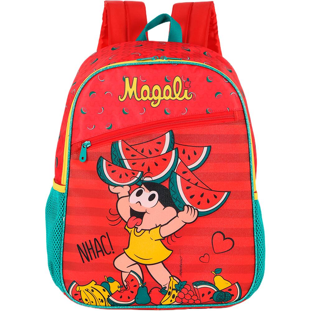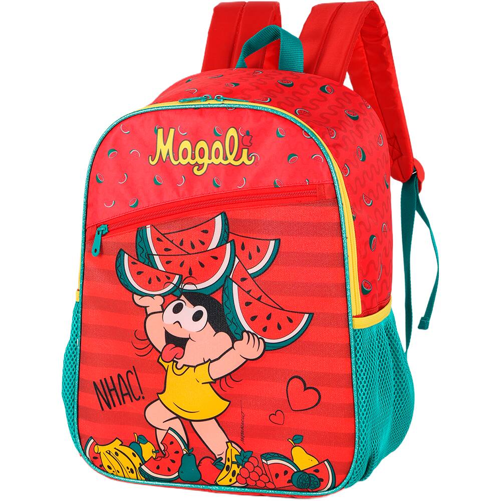 Mochila escolar em poliéster Turma da Mônica, Magali, Vermelho, Luxcel - PT 1 UN