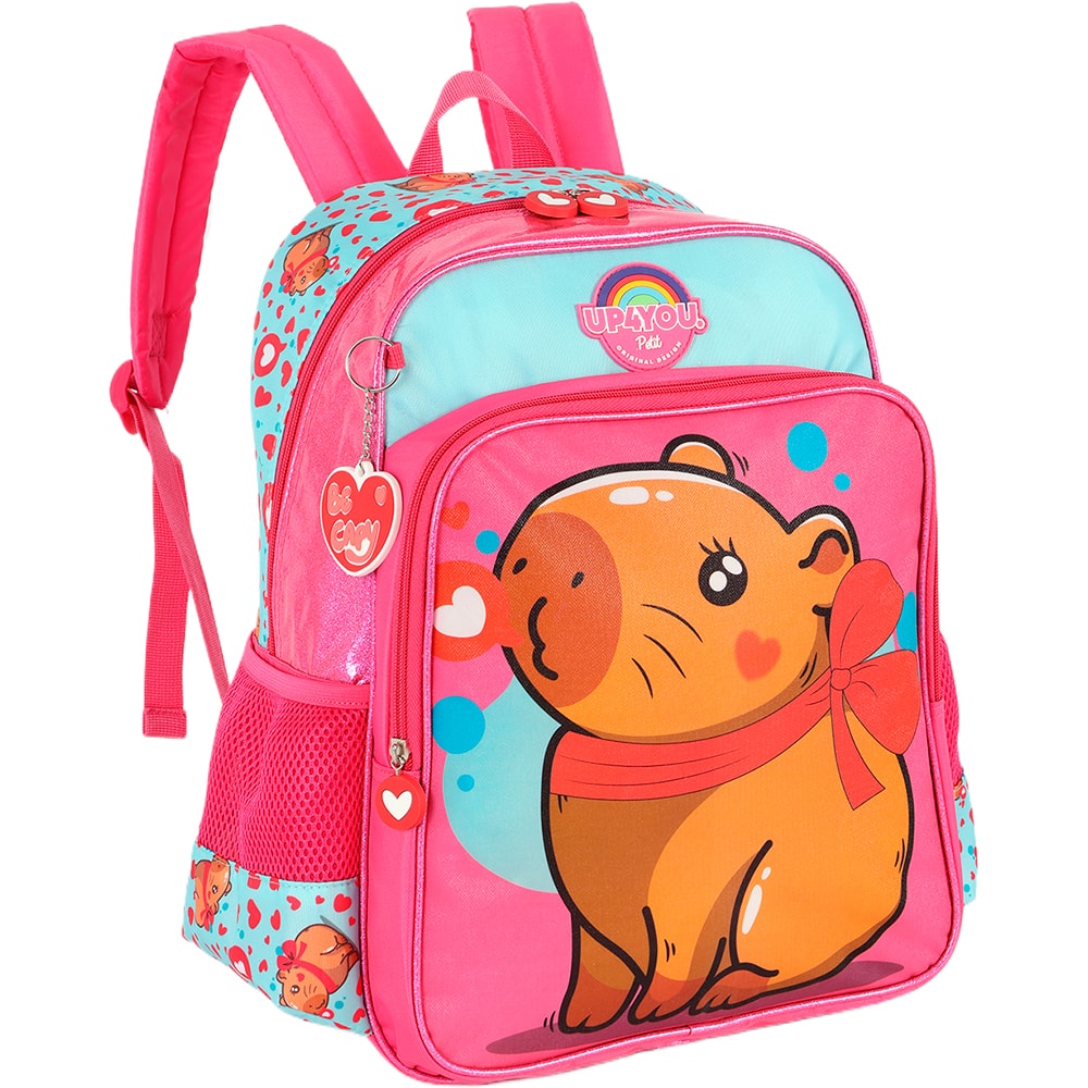 Mochila escolar em poliéster Up4you Capivara, Rosa, IS42111UP0310U, Luxcel - PT 1 UN