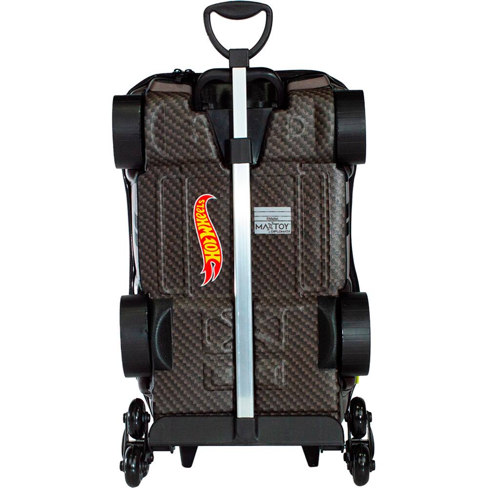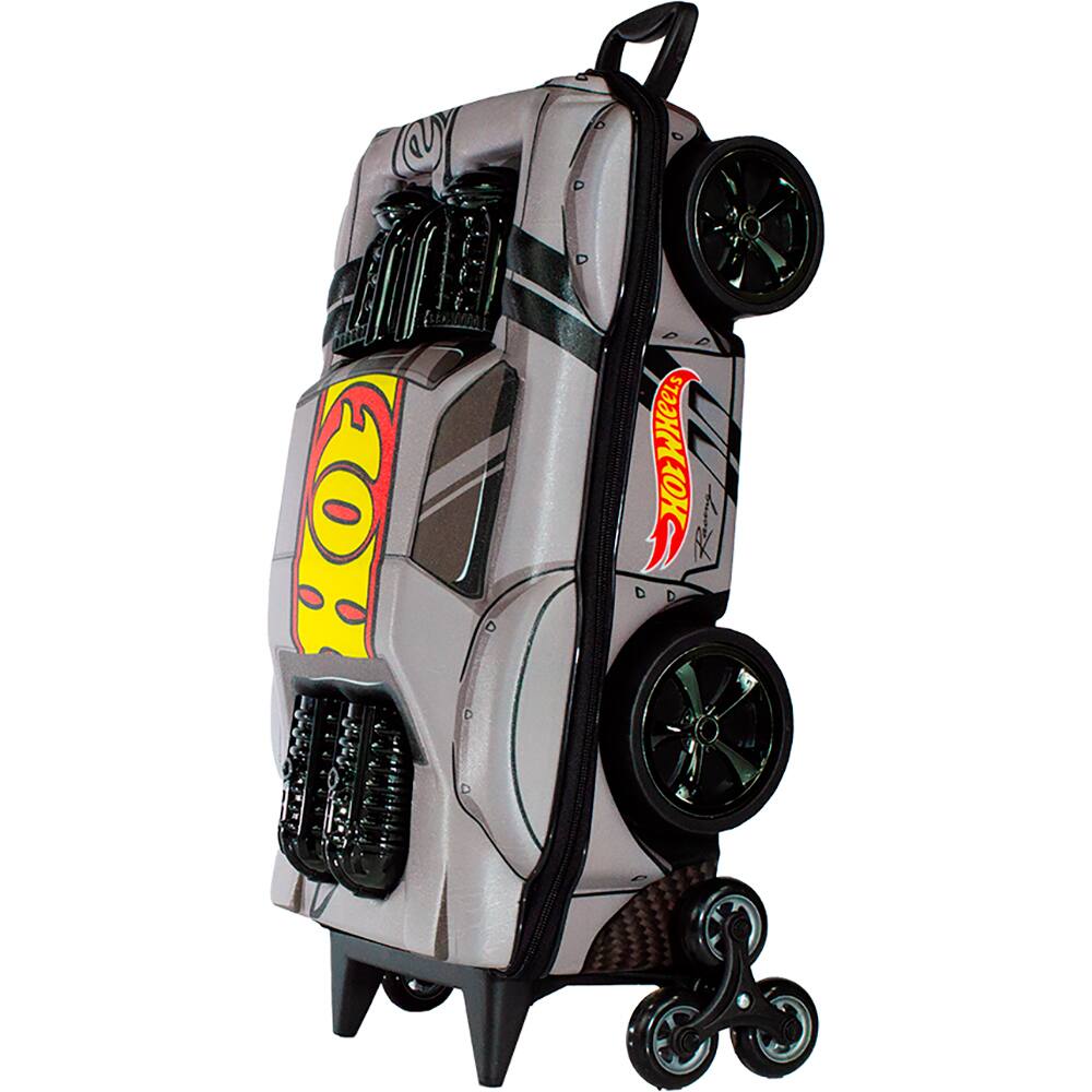 - Mochila com rodas triplas: Hot Wheels Night Shifter Cinza, Motor Dourado
