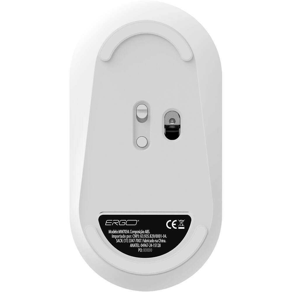 Mouse sem fio, 1600 DPI, Branco, MW7034W, Ergo + Pilha Alcalina Duracell Pequena AA, Optimum CX 1 UN