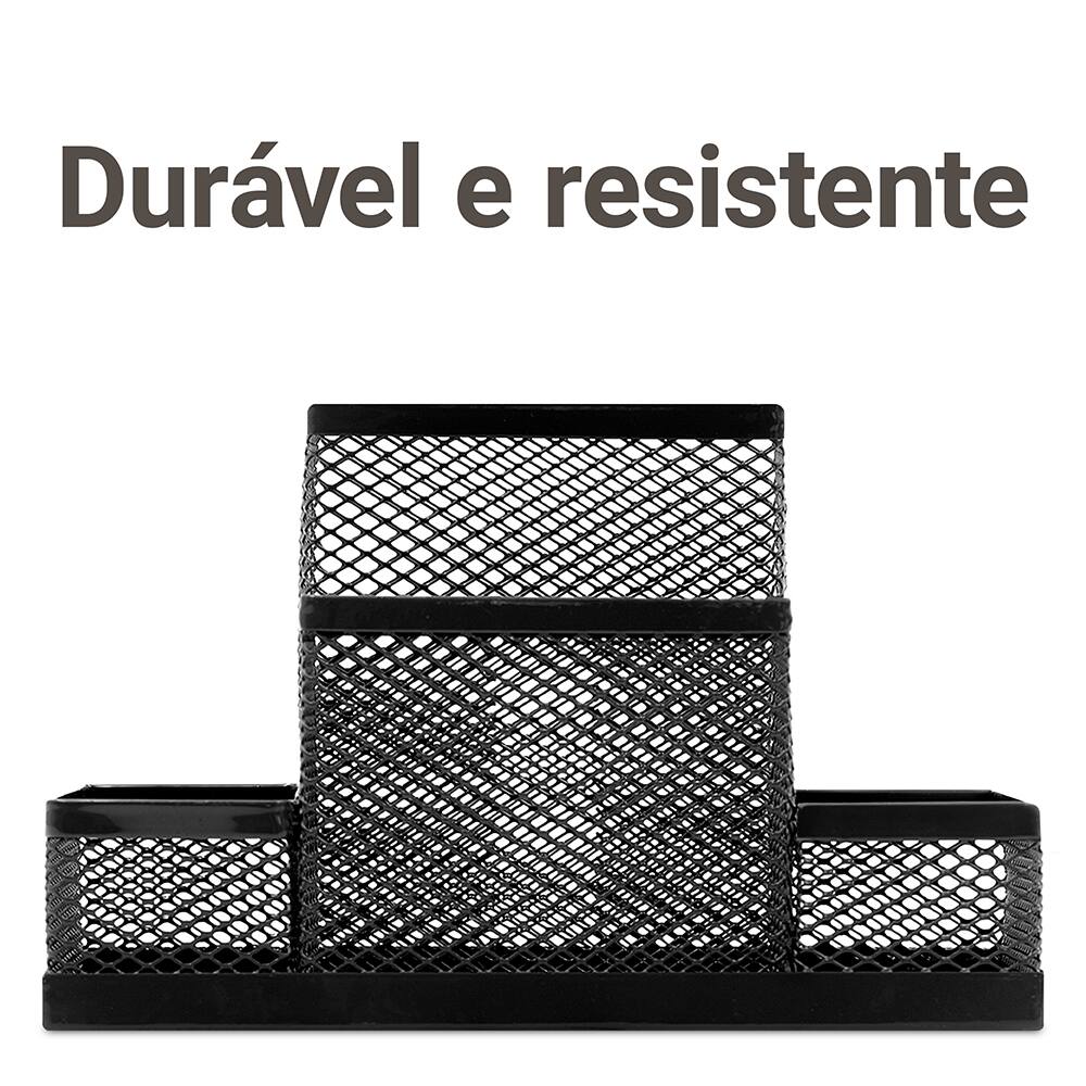 Feito com material de alta qualidade, o Organizador de Mesa Aramado é durável e resistente, garantindo que seu escritório permaneça em ordem durante muito tempo. Invista em um produto que não apenas melhora a funcionalidade do seu dia a dia, mas também se destaca pela sua estética, trazendo mais alegria e leveza ao seu espaço de trabalho.