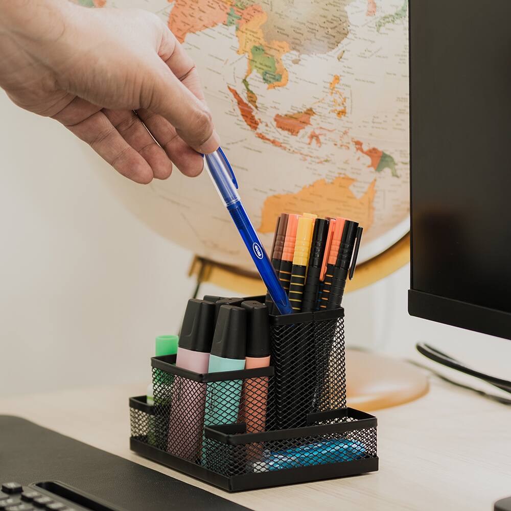Transforme sua mesa em um espaço mais organizado e inspirador com o Organizador de Mesa Aramado da Spiral Office. Com um design elegante Preto, este organizador não é apenas funcional, mas também dá um toque moderno ao seu ambiente de trabalho. Diga adeus à bagunça e olá à praticidade, permitindo que você mantenha todos os seus itens essenciais à mão e facilmente acessíveis!