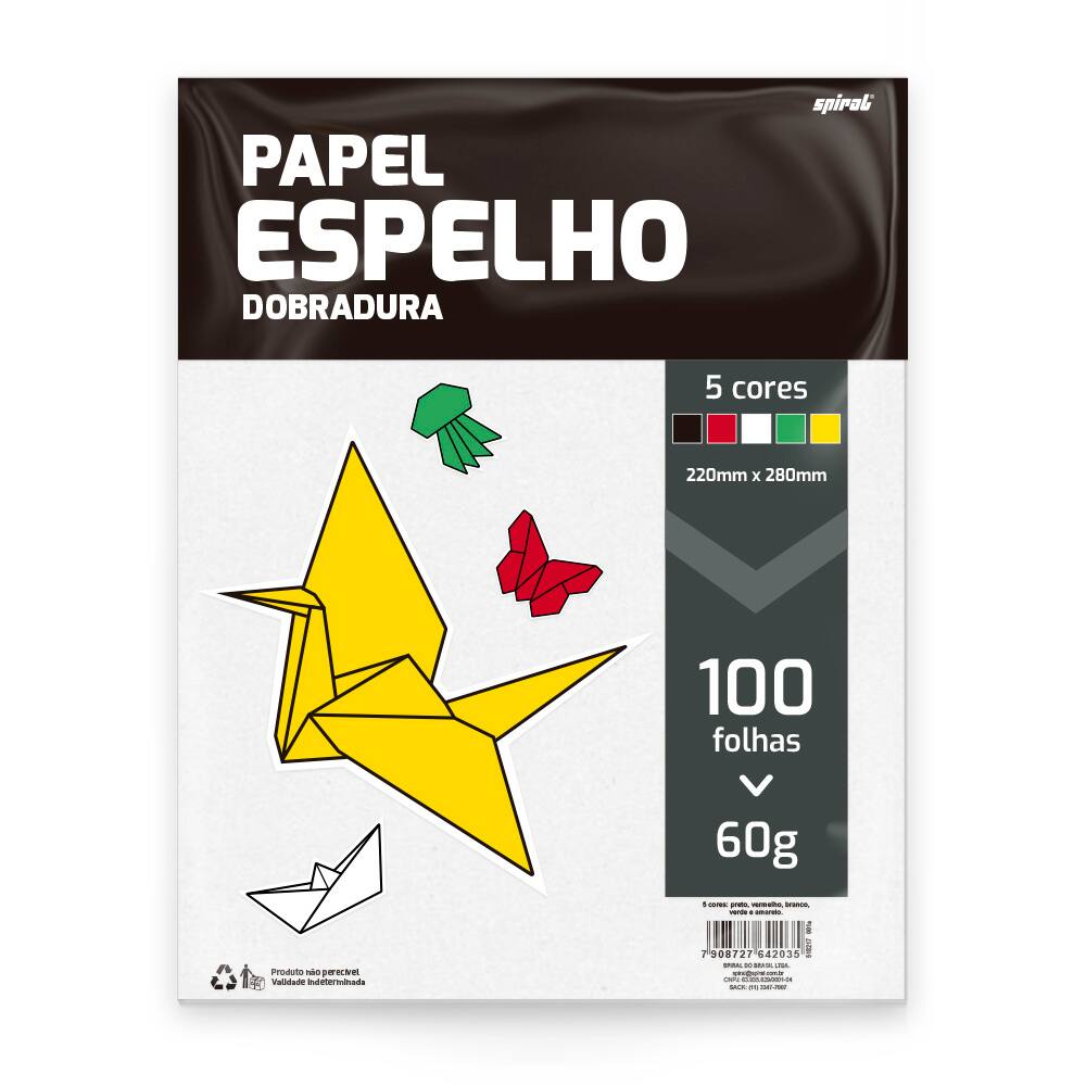 Papel espelho (dobradura), 22 x 28cm, 60g, 05 cores, 2542035, Spiral - PT 100 UN