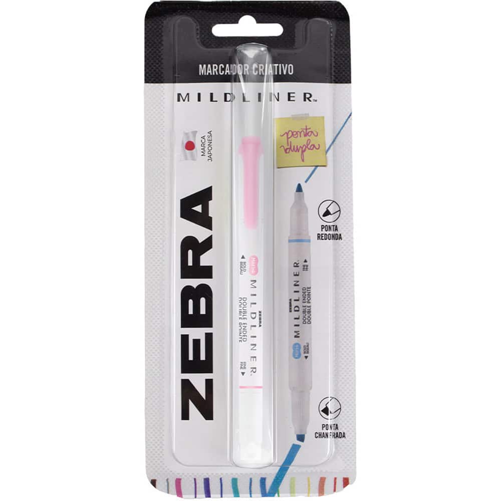 Pincel marca texto Mildliner, Ponta dupla, Rosa, 23.024, Zebra - BT 1 UN