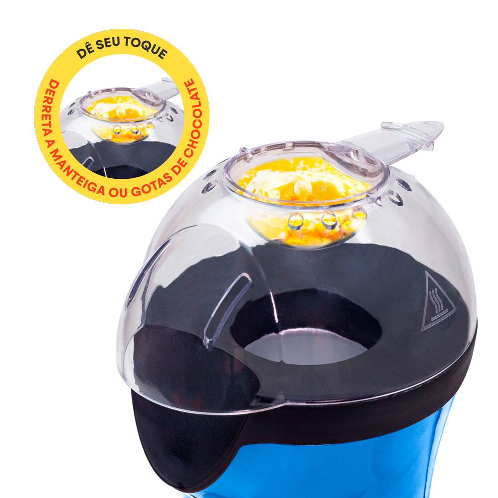 A Pipoqueira Stitch possui uma tampa medidora que permite que você derreta manteiga ou chocolate enquanto ela estoura o milho. Depois de prontas, basta despejar por cima das pipocas, deixando-as ainda mais irresistíveis. Não se preocupe mais em comprar pipocas de micro-ondas - agora você pode desfrutar de um lanche fresco, saboroso e saudável em casa!