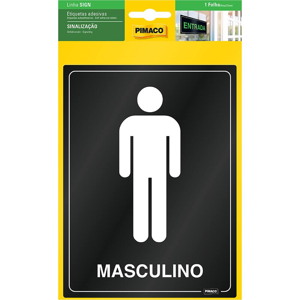 Placa para sinalização adesiva, Banheiro Masculino, 138 x 185mm, 970967, Pimaco - PT 1 UN