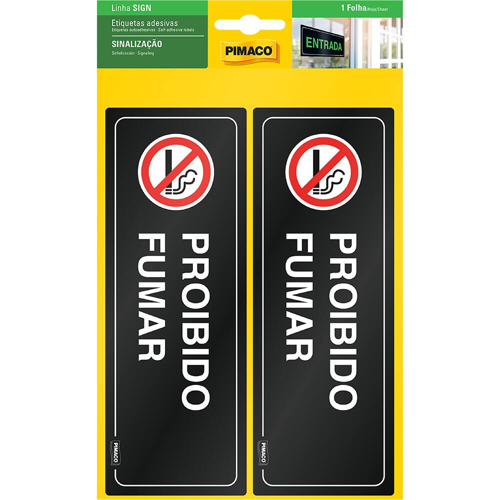Placa para sinalização adesiva, Proibido Fumar, 67,5 x 185mm, 970963, Pimaco - PT 1 UN