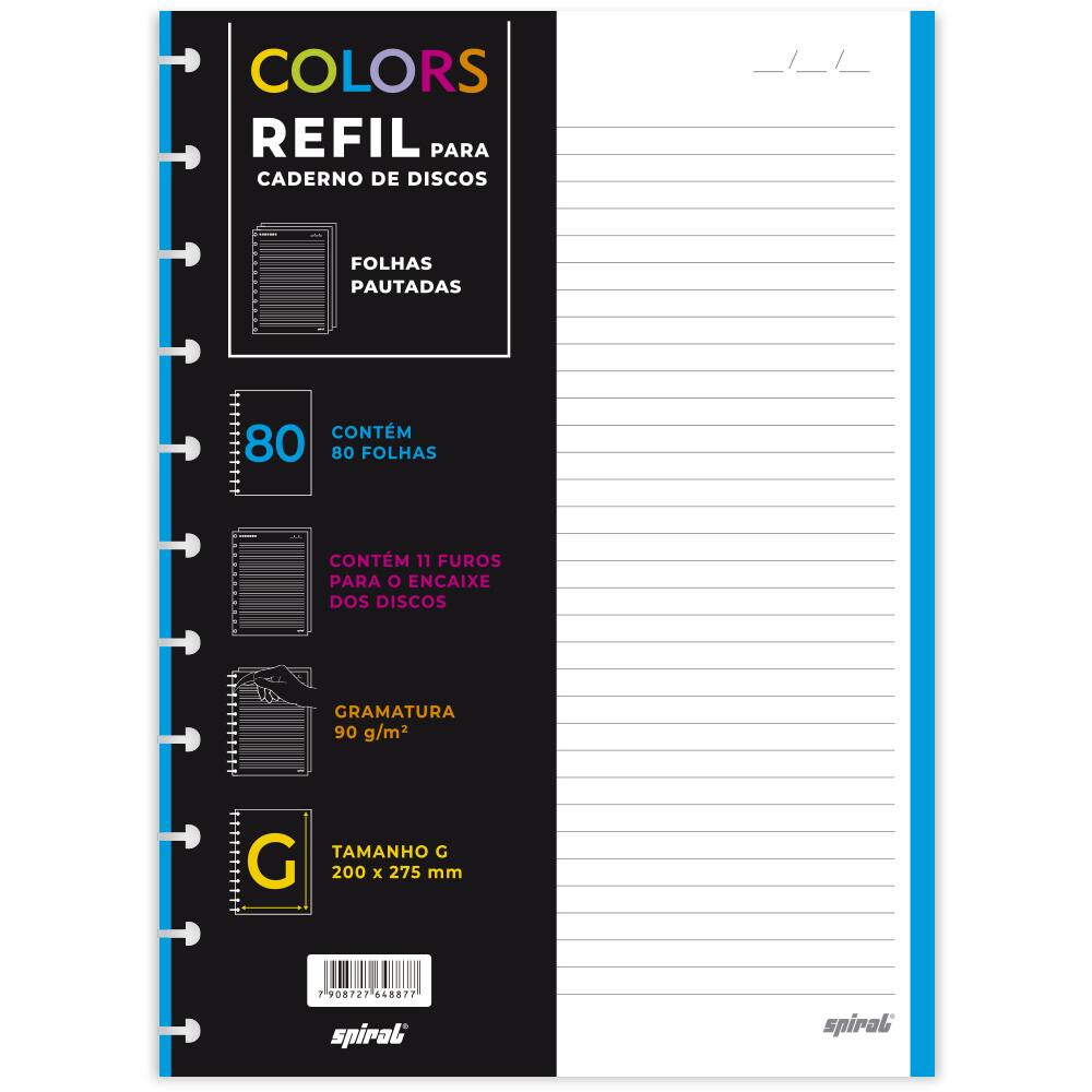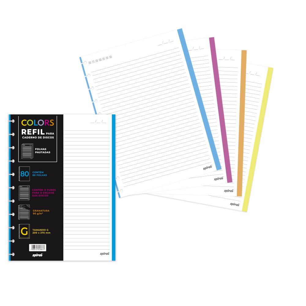 Refil para Caderno de Disco Tamanho G (200×275 mm) com 80 Folhas Pautadas, Colors, Gramatura 90g, 2648877, Spiral - PT 1 UN