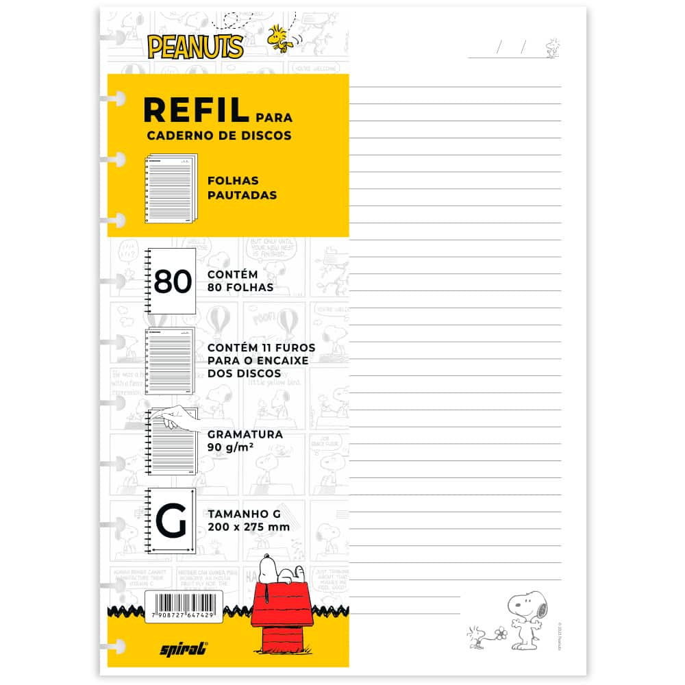 Refil para Caderno de Disco Tamanho G (200×275 mm) com 80 Folhas Pautadas, Snoopy, Gramatura 90g, 2647429, Spiral Sno - PT 1 UN