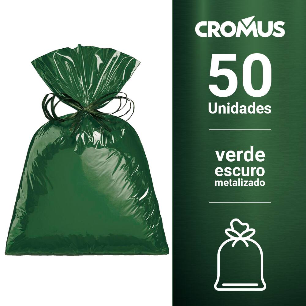 Saco para presente metalizado, 35 x 54cm, Verde escuro, 99005846, Cromus - PT 50 UN