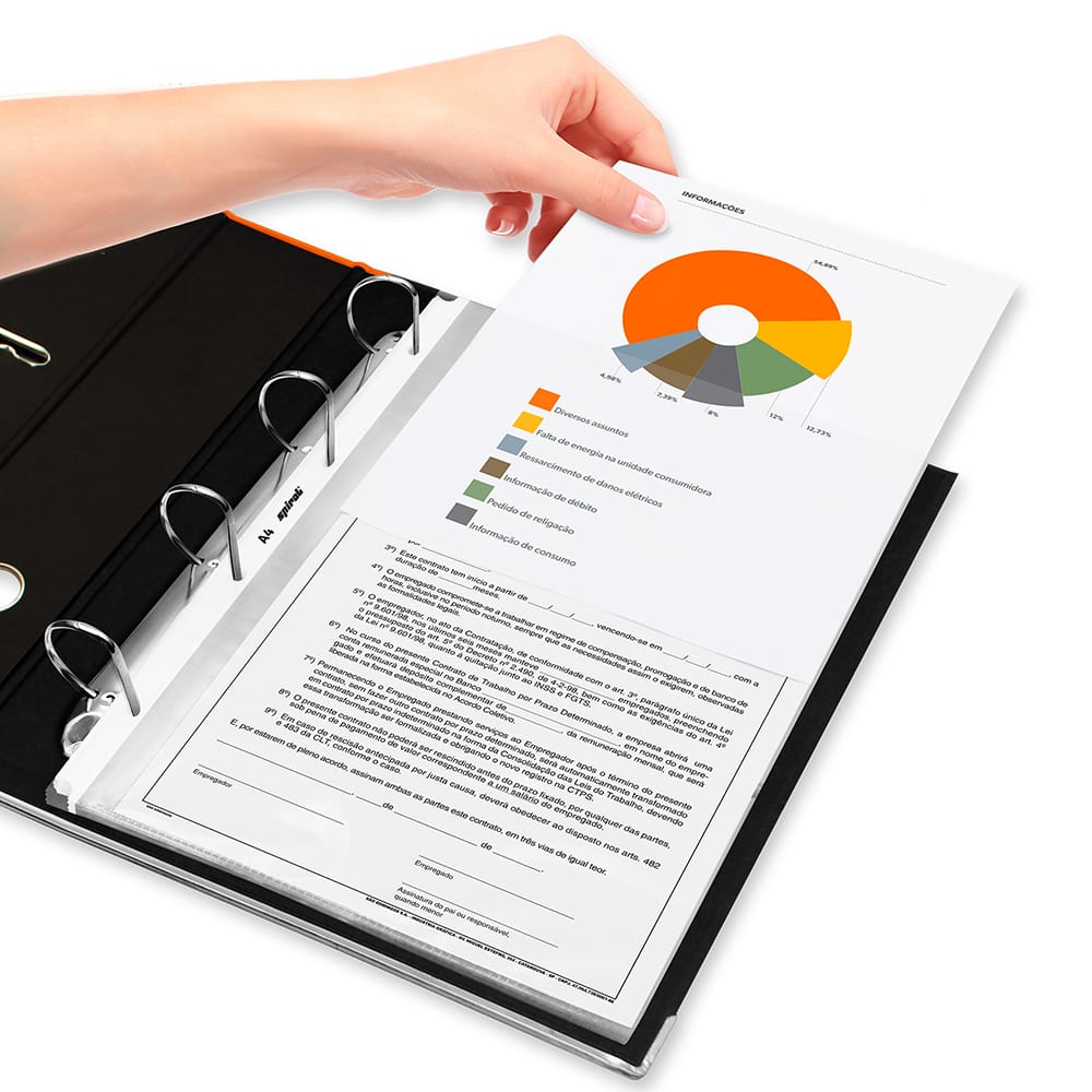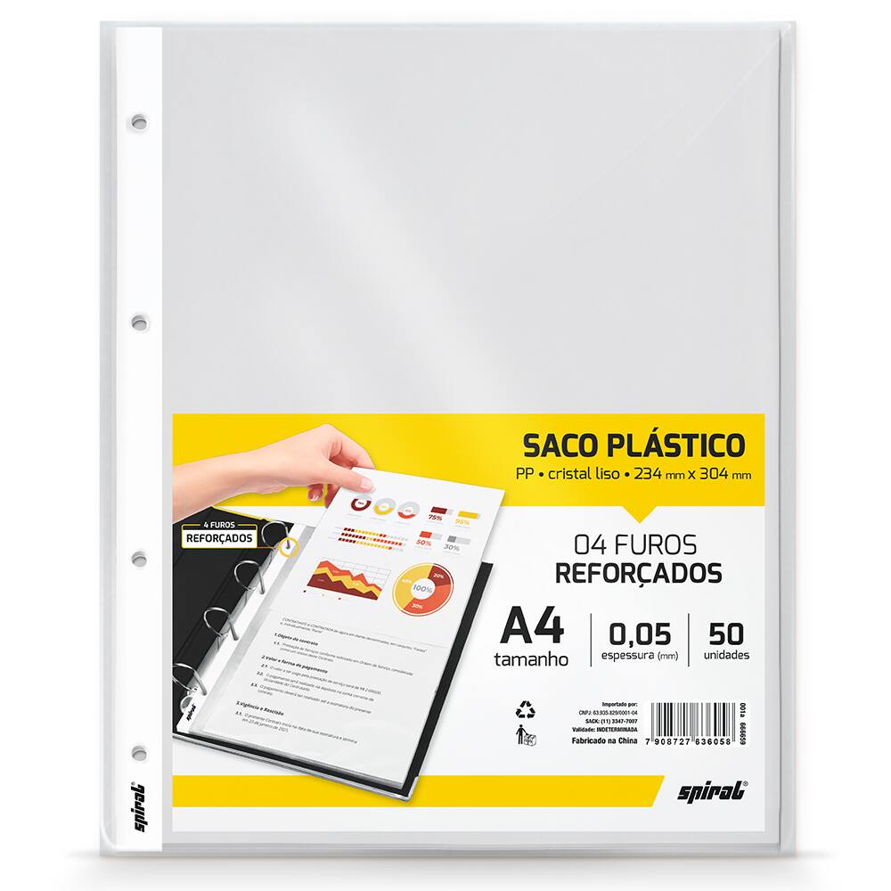 Saco plástico PP A4 4 furos reforçados 0,05mm Spiral PT 50 UN