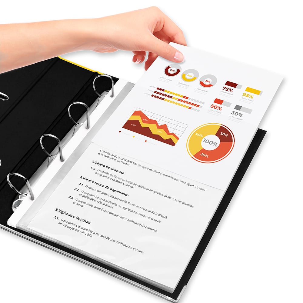 Saco plástico PP A4 4 furos reforçados 0,10mm Spiral PT 50 UN